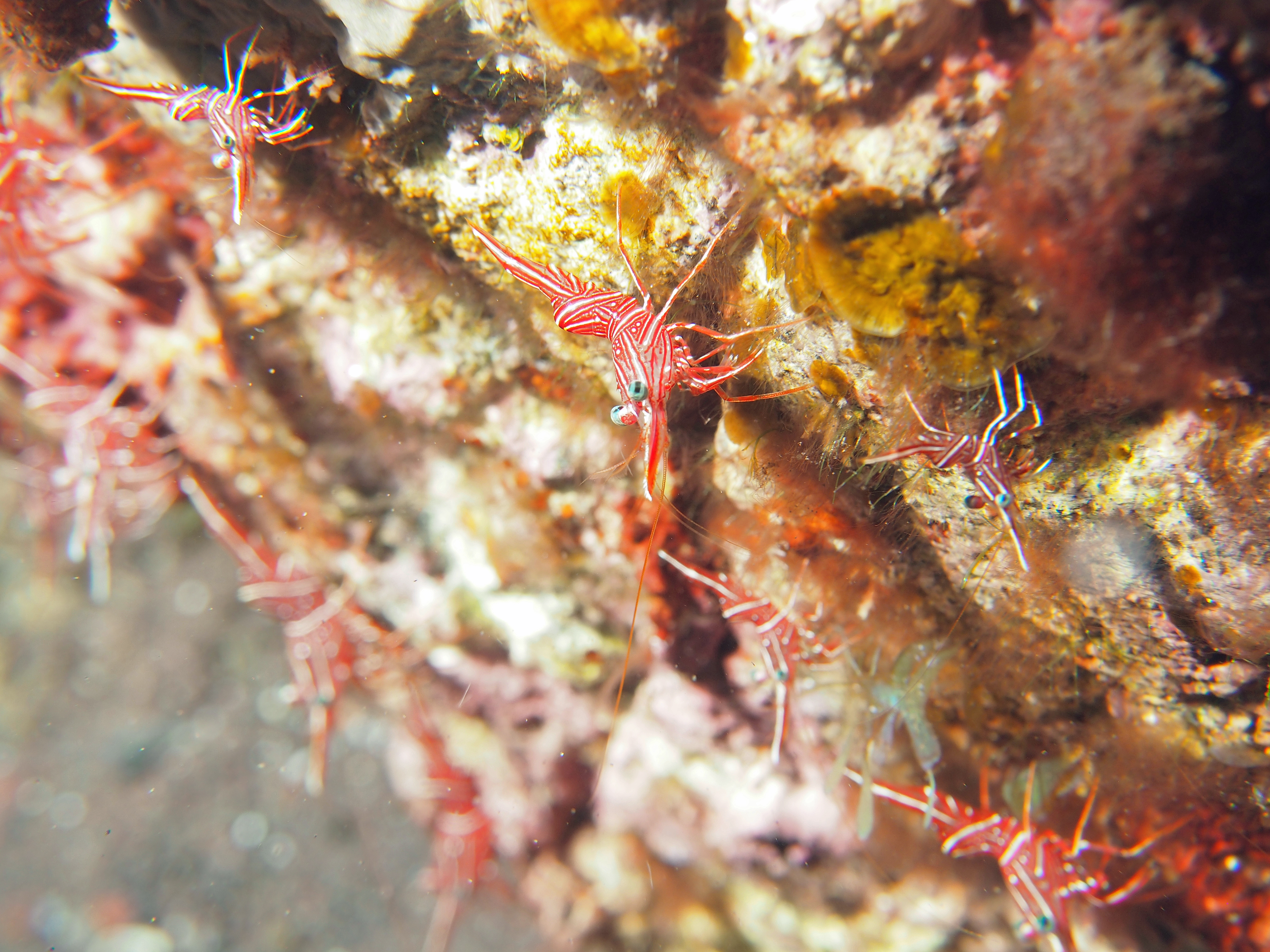 An unserem letzten Tauchtag in Tulamben hatten wir uns vorgenommen 3-mal zu tauchen. Auf allen 3 TG gab es viel Makro zu sehen. Besonders gefallen hat uns der 3. TG an einem älteren Hotel welches wohl hauptsächlich von Guids benutzt wird. Wir sahen dort einen großen schwarzen Schaukelfisch, 4 Geisterfetzenfische einen Fangschreckenkrebs und 2 Putzerstationen mit vielen Garnelen. Es war zwar nicht besonders tief aber da es schon unser 3. TG war und man dauernd was neues entdeckte mussten wir doch sehr aufpassen nicht in die Deko zu kommen. Wir waren alle sehr begeistert und uns einig das dies einer der schönsten Tauchgänge war.