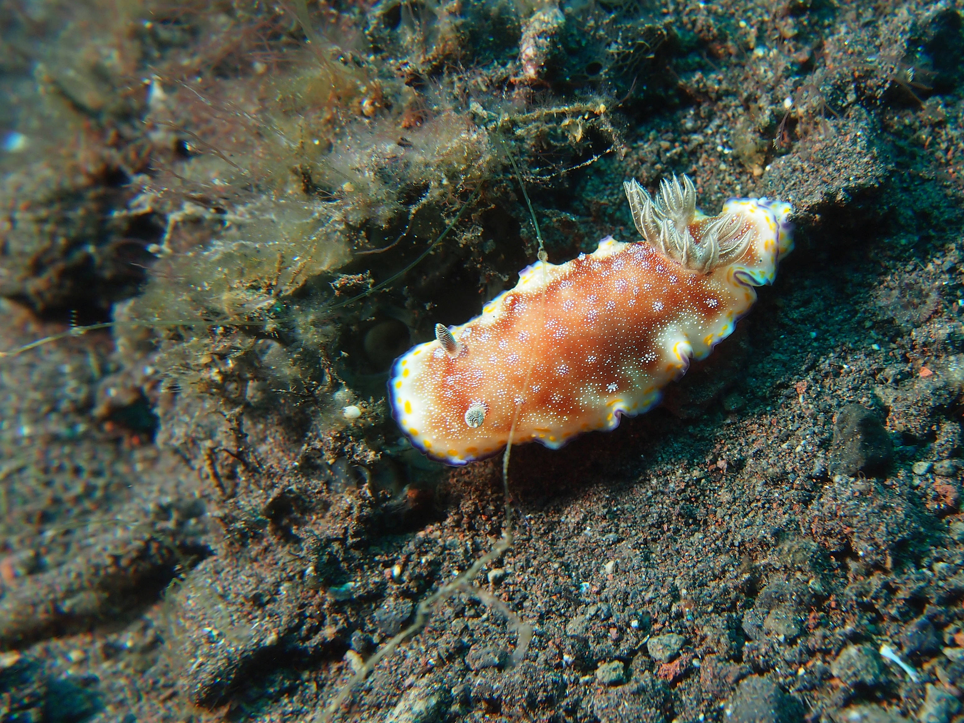 An unserem letzten Tauchtag in Tulamben hatten wir uns vorgenommen 3-mal zu tauchen. Auf allen 3 TG gab es viel Makro zu sehen. Besonders gefallen hat uns der 3. TG an einem älteren Hotel welches wohl hauptsächlich von Guids benutzt wird. Wir sahen dort einen großen schwarzen Schaukelfisch, 4 Geisterfetzenfische einen Fangschreckenkrebs und 2 Putzerstationen mit vielen Garnelen. Es war zwar nicht besonders tief aber da es schon unser 3. TG war und man dauernd was neues entdeckte mussten wir doch sehr aufpassen nicht in die Deko zu kommen. Wir waren alle sehr begeistert und uns einig das dies einer der schönsten Tauchgänge war.