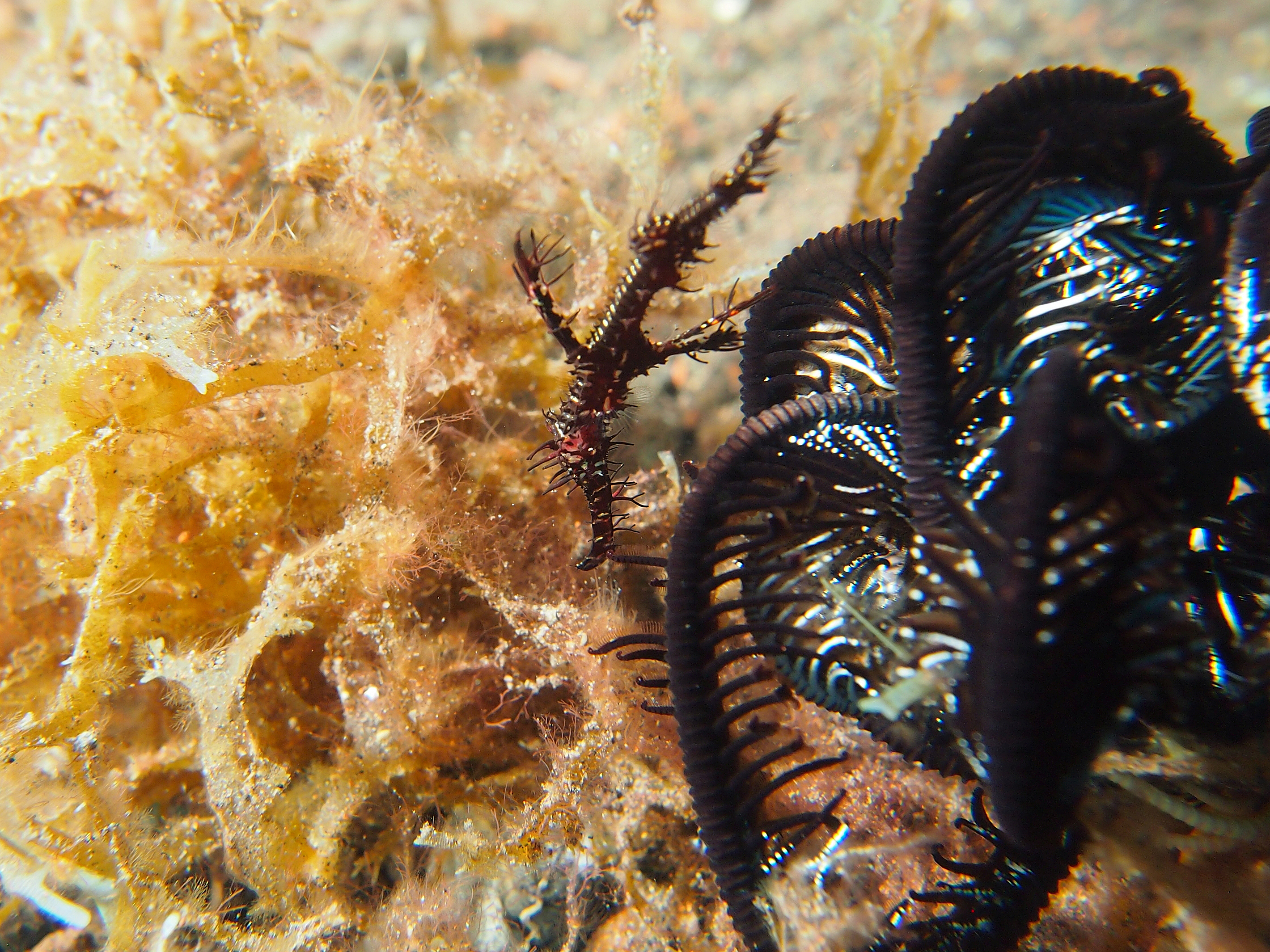 An unserem letzten Tauchtag in Tulamben hatten wir uns vorgenommen 3-mal zu tauchen. Auf allen 3 TG gab es viel Makro zu sehen. Besonders gefallen hat uns der 3. TG an einem älteren Hotel welches wohl hauptsächlich von Guids benutzt wird. Wir sahen dort einen großen schwarzen Schaukelfisch, 4 Geisterfetzenfische einen Fangschreckenkrebs und 2 Putzerstationen mit vielen Garnelen. Es war zwar nicht besonders tief aber da es schon unser 3. TG war und man dauernd was neues entdeckte mussten wir doch sehr aufpassen nicht in die Deko zu kommen. Wir waren alle sehr begeistert und uns einig das dies einer der schönsten Tauchgänge war.