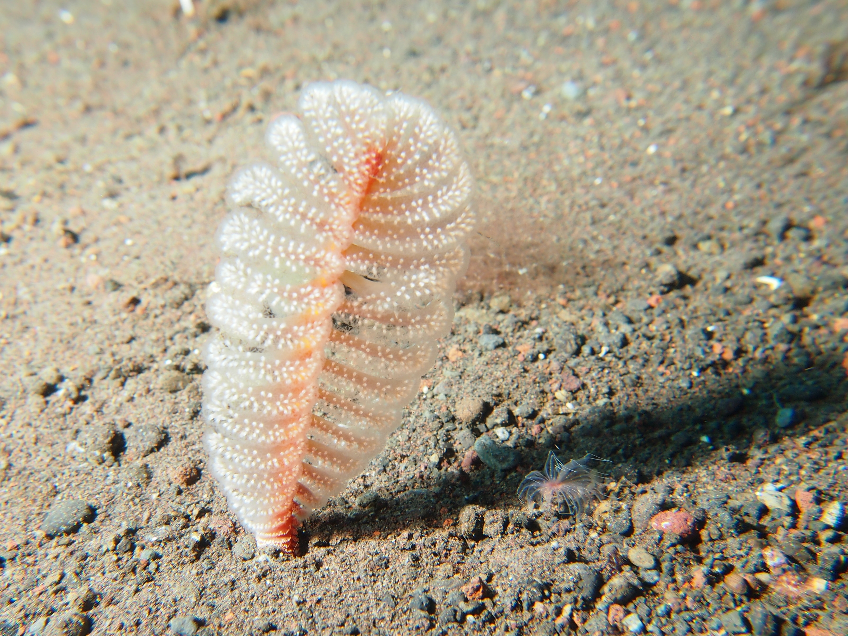 An unserem letzten Tauchtag in Tulamben hatten wir uns vorgenommen 3-mal zu tauchen. Auf allen 3 TG gab es viel Makro zu sehen. Besonders gefallen hat uns der 3. TG an einem älteren Hotel welches wohl hauptsächlich von Guids benutzt wird. Wir sahen dort einen großen schwarzen Schaukelfisch, 4 Geisterfetzenfische einen Fangschreckenkrebs und 2 Putzerstationen mit vielen Garnelen. Es war zwar nicht besonders tief aber da es schon unser 3. TG war und man dauernd was neues entdeckte mussten wir doch sehr aufpassen nicht in die Deko zu kommen. Wir waren alle sehr begeistert und uns einig das dies einer der schönsten Tauchgänge war.