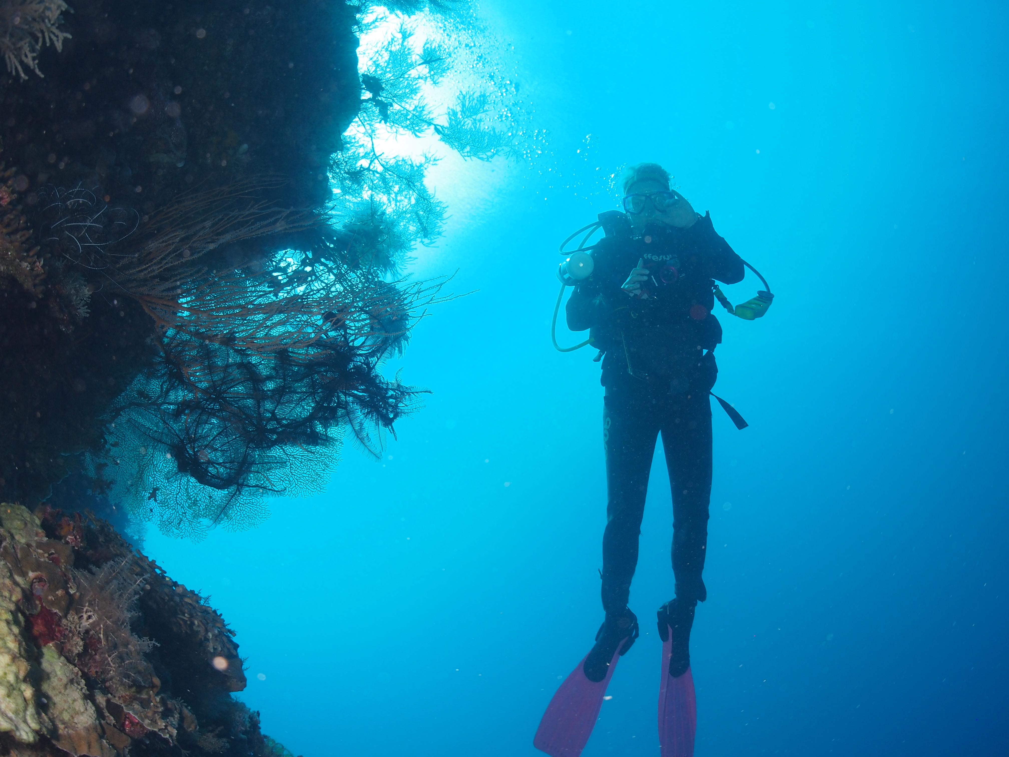 Heute Morgen konnten wir länger schlafen da wir erst um 10:00 Uhr abgeholt wurden. Zuerst ging es 20 Minuten mit dem Auto zum Hafen und von da aus nochmal 45 Minuten mit dem Boot zur Insel Menjangan. Dort hatten wir dann 2 entspannte Tauchgänge mit den üblichen Fischen in einem Korallenriff.