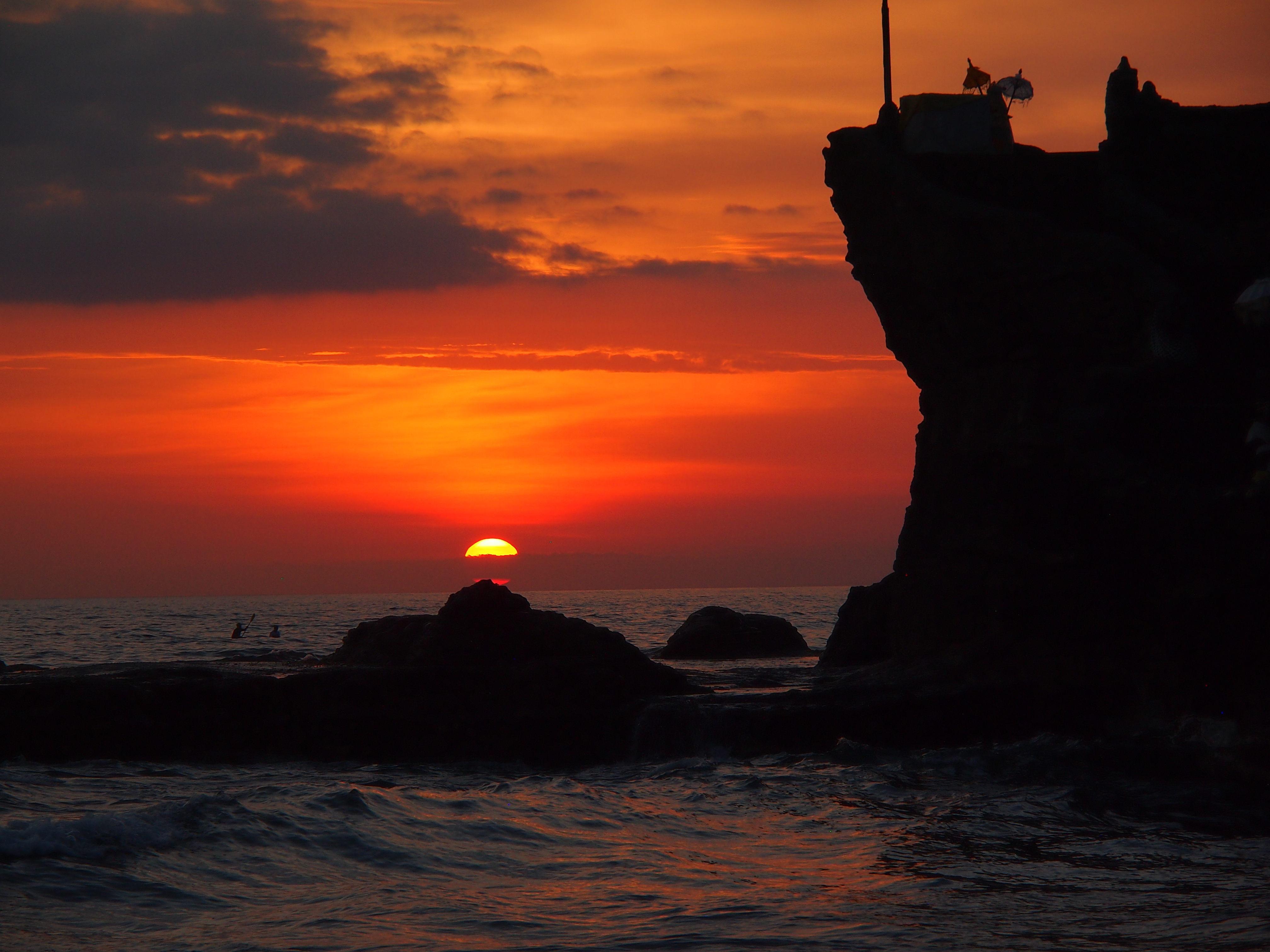 Heute Morgen hatten wir nichts geplant und deshalb den Tag erstmal mit einem Hörbuch am Pool begonnen. Um 15:00 Uhr kam dann ein schon in Deutschland organisierter Fahrer und hat uns zum Tanna Lot Tempel gebracht. Der Sonnenuntergang auf dem Meer mit dem Tempel im Vordergrund ist die Fahrt auf jeden Fall Wert. Auf die vielen Besucher und das Essen dort oben könnte man aber getrost verzichten.