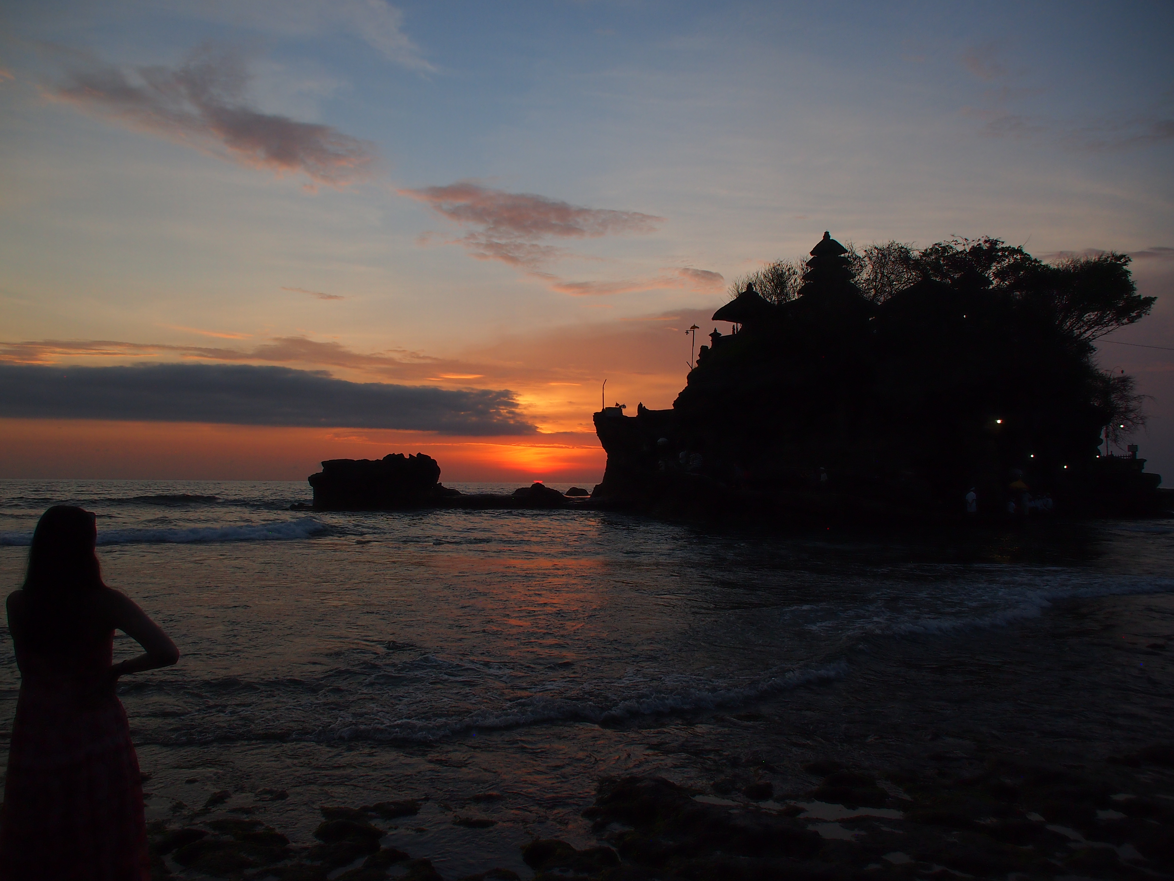 Heute Morgen hatten wir nichts geplant und deshalb den Tag erstmal mit einem Hörbuch am Pool begonnen. Um 15:00 Uhr kam dann ein schon in Deutschland organisierter Fahrer und hat uns zum Tanna Lot Tempel gebracht. Der Sonnenuntergang auf dem Meer mit dem Tempel im Vordergrund ist die Fahrt auf jeden Fall Wert. Auf die vielen Besucher und das Essen dort oben könnte man aber getrost verzichten.