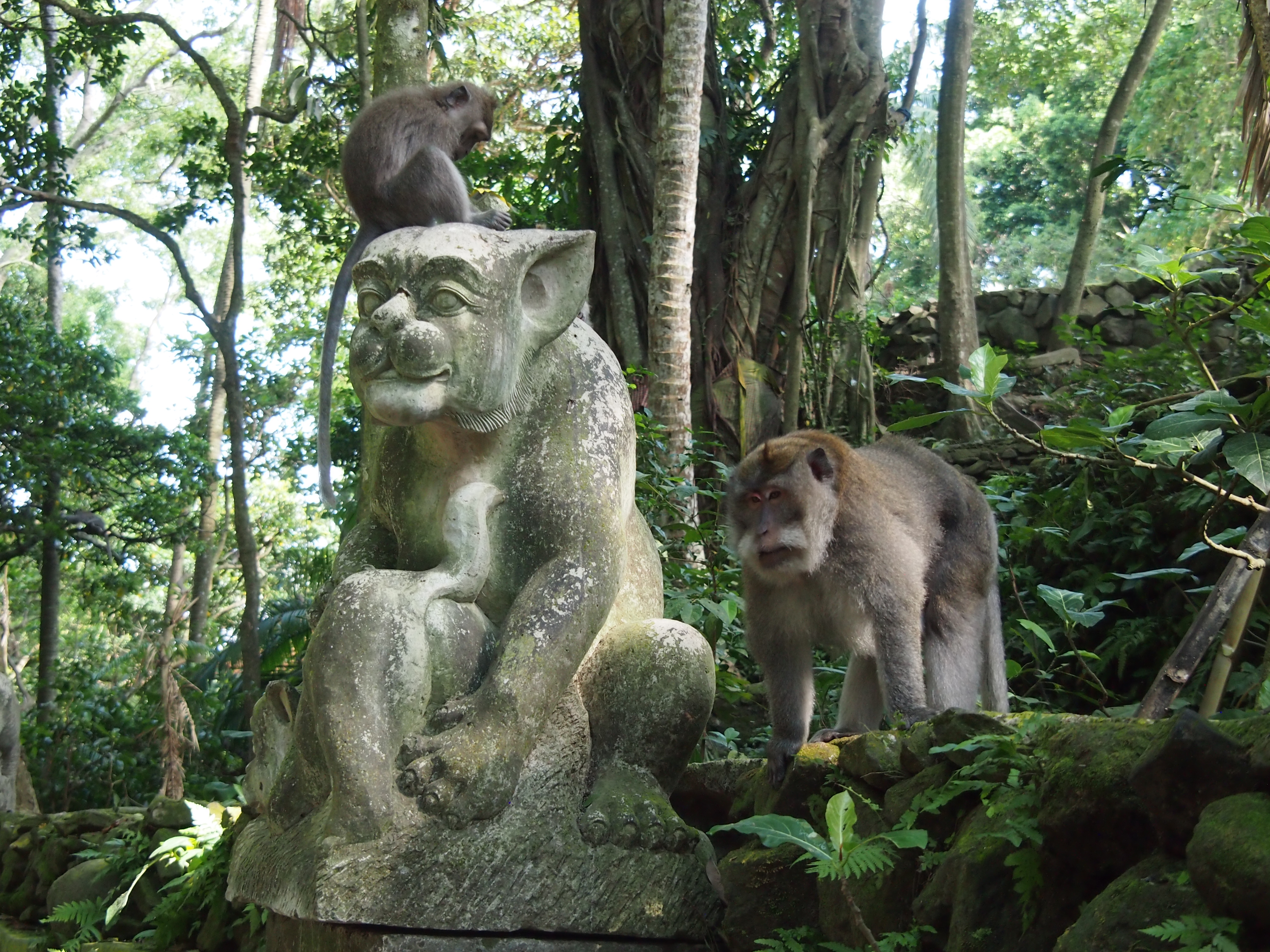 Um 09:00 Uhr ging heute Morgen unsere Rundreise mit der Fahrt zurück nach Sanur weiter. Als erstes sind wir in den Affenwald gefahren. Dort kann man wunderschön beobachten wie die Makaken durch die Bäume und über die Statuen klettern. Auch ein riesiger Ficus Benjamin mit Luftwurzeln über 30 m im Durchmesser verteilt haben wir dort bestaunt. Danach ging es weiter zu einer wunderschön im Hang gelegen Reis-Terrasse. Sehr interessant war auch ein Besuch in einem kleinen Gewürz und Kaffeehandel. Wir sahen die verschiedenen Bäume und Früchte welche hier wachsen. Auch konnten wir die verschiedenen Stufen der Kaffeeherstellung beobachten. Einschließlich der Mungos welche die Kaffeebohnen fressen und dann wieder ausscheiden was dann den berühmten Luwak Kaffee ergibt. All diese verschiedenen Sorten konnten wir hier probieren. Nach dem Mittagessen sind wir dann noch in eine Holzschnitzerei gefahren wo Peter sich einen Barong und Claudia sich einen Elefanten erhandelt haben. Auf speziellen Wunsch von Peter ging es dann noch zum Harley Händler bevor wir unser ausgewaschenes und getrocknetes Tauchgepäck in der Ena Tauchbasis in Empfang nehmen konnten. Dort haben wir dann den einen zusätzlichen Tauchtag bezahlt und bekamen eine landestypische Schnitzerei mit unserem Namen geschenkt. Angekommen im Puri Mesari Hotel haben wir die letzte Gelegenheit genutzt uns nochmal eine Massage zu gönnen und haben dann auch im Hotel lecker zu Abend gegessen.