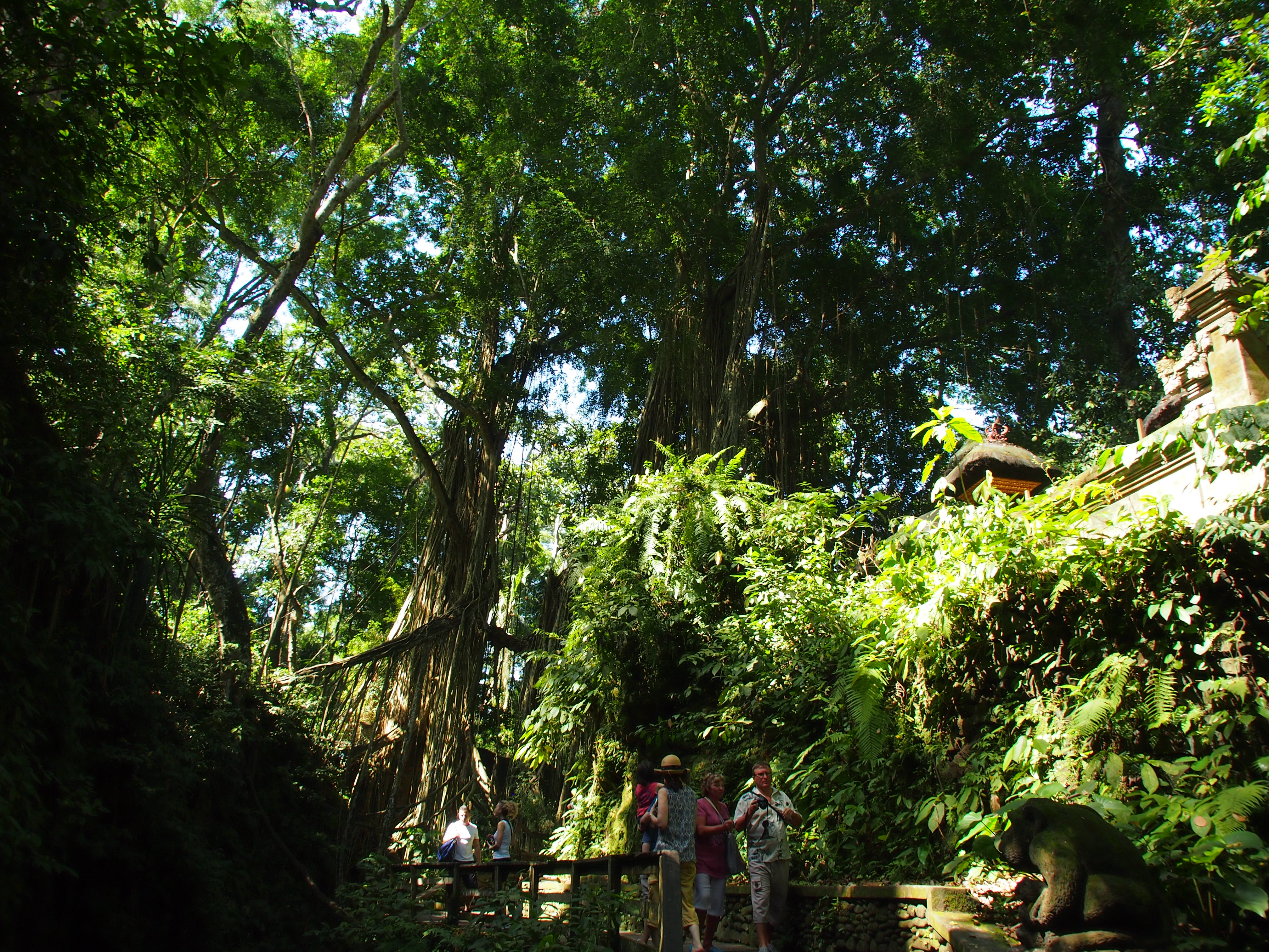 Um 09:00 Uhr ging heute Morgen unsere Rundreise mit der Fahrt zurück nach Sanur weiter. Als erstes sind wir in den Affenwald gefahren. Dort kann man wunderschön beobachten wie die Makaken durch die Bäume und über die Statuen klettern. Auch ein riesiger Ficus Benjamin mit Luftwurzeln über 30 m im Durchmesser verteilt haben wir dort bestaunt. Danach ging es weiter zu einer wunderschön im Hang gelegen Reis-Terrasse. Sehr interessant war auch ein Besuch in einem kleinen Gewürz und Kaffeehandel. Wir sahen die verschiedenen Bäume und Früchte welche hier wachsen. Auch konnten wir die verschiedenen Stufen der Kaffeeherstellung beobachten. Einschließlich der Mungos welche die Kaffeebohnen fressen und dann wieder ausscheiden was dann den berühmten Luwak Kaffee ergibt. All diese verschiedenen Sorten konnten wir hier probieren. Nach dem Mittagessen sind wir dann noch in eine Holzschnitzerei gefahren wo Peter sich einen Barong und Claudia sich einen Elefanten erhandelt haben. Auf speziellen Wunsch von Peter ging es dann noch zum Harley Händler bevor wir unser ausgewaschenes und getrocknetes Tauchgepäck in der Ena Tauchbasis in Empfang nehmen konnten. Dort haben wir dann den einen zusätzlichen Tauchtag bezahlt und bekamen eine landestypische Schnitzerei mit unserem Namen geschenkt. Angekommen im Puri Mesari Hotel haben wir die letzte Gelegenheit genutzt uns nochmal eine Massage zu gönnen und haben dann auch im Hotel lecker zu Abend gegessen.