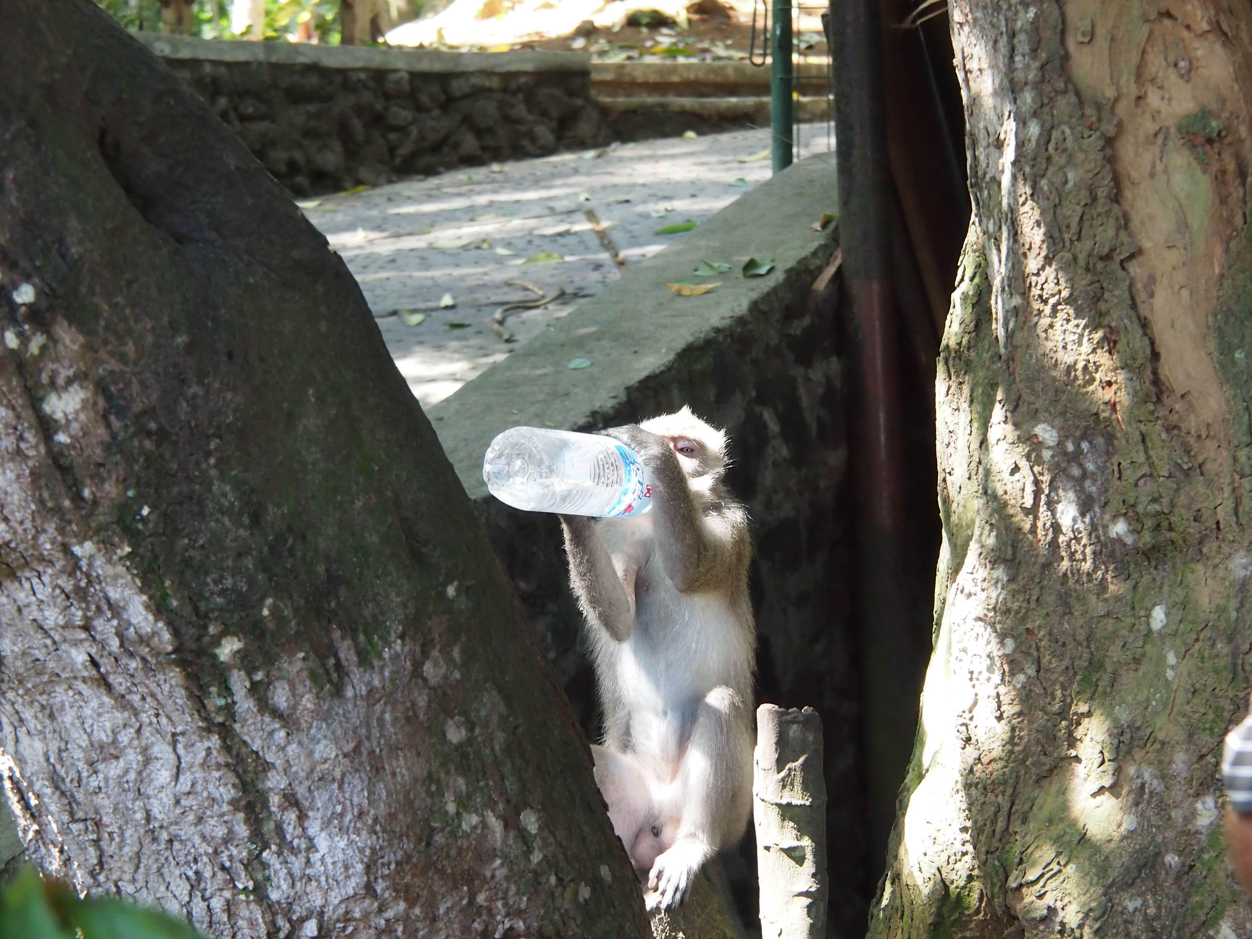 Um 09:00 Uhr ging heute Morgen unsere Rundreise mit der Fahrt zurück nach Sanur weiter. Als erstes sind wir in den Affenwald gefahren. Dort kann man wunderschön beobachten wie die Makaken durch die Bäume und über die Statuen klettern. Auch ein riesiger Ficus Benjamin mit Luftwurzeln über 30 m im Durchmesser verteilt haben wir dort bestaunt. Danach ging es weiter zu einer wunderschön im Hang gelegen Reis-Terrasse. Sehr interessant war auch ein Besuch in einem kleinen Gewürz und Kaffeehandel. Wir sahen die verschiedenen Bäume und Früchte welche hier wachsen. Auch konnten wir die verschiedenen Stufen der Kaffeeherstellung beobachten. Einschließlich der Mungos welche die Kaffeebohnen fressen und dann wieder ausscheiden was dann den berühmten Luwak Kaffee ergibt. All diese verschiedenen Sorten konnten wir hier probieren. Nach dem Mittagessen sind wir dann noch in eine Holzschnitzerei gefahren wo Peter sich einen Barong und Claudia sich einen Elefanten erhandelt haben. Auf speziellen Wunsch von Peter ging es dann noch zum Harley Händler bevor wir unser ausgewaschenes und getrocknetes Tauchgepäck in der Ena Tauchbasis in Empfang nehmen konnten. Dort haben wir dann den einen zusätzlichen Tauchtag bezahlt und bekamen eine landestypische Schnitzerei mit unserem Namen geschenkt. Angekommen im Puri Mesari Hotel haben wir die letzte Gelegenheit genutzt uns nochmal eine Massage zu gönnen und haben dann auch im Hotel lecker zu Abend gegessen.