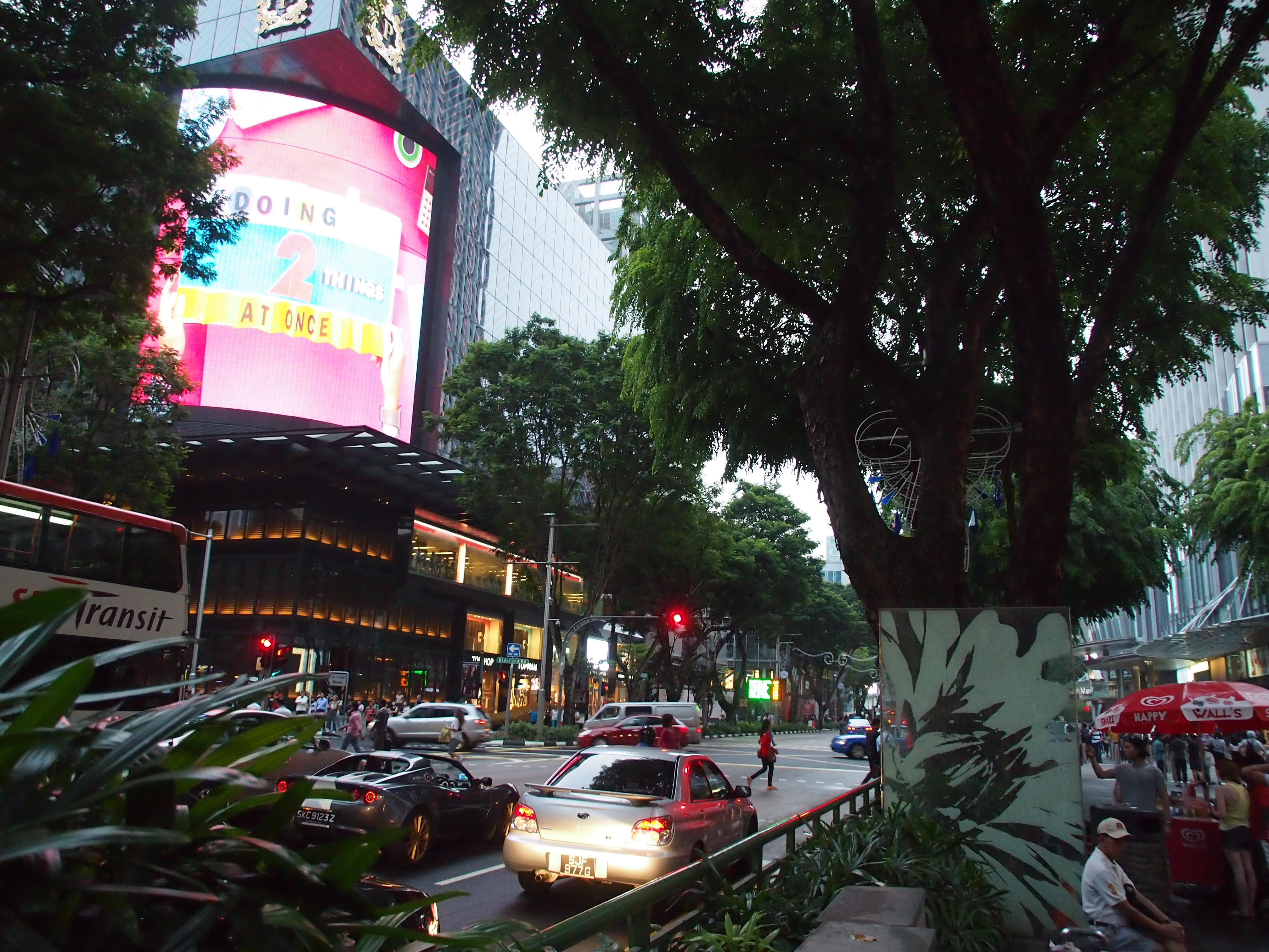 Um 7:30 Uhr wurden wir zum letzten Mal vom Ena Dive Center zur Fahrt zum Flughafen abholen. Das einchecken verlief reibungslos und wir landeten pünktlich um 13:05 Uhr in Singapur. Am Flughafen kauften wir uns ein 3 Tages Touristenticket für die Bahn und fuhren dann mit der MRT bis Summerset. Da es hier aber in Strömen regnete nahmen wir uns ein Taxi zum Holiday Inn in der Orchard Road. Abends spazierten wir dann noch ein bisschen diese Straße entlang aßen bei einem Thai Restaurant in der Nähe und ließen den Flair der Stadt auf uns wirken.