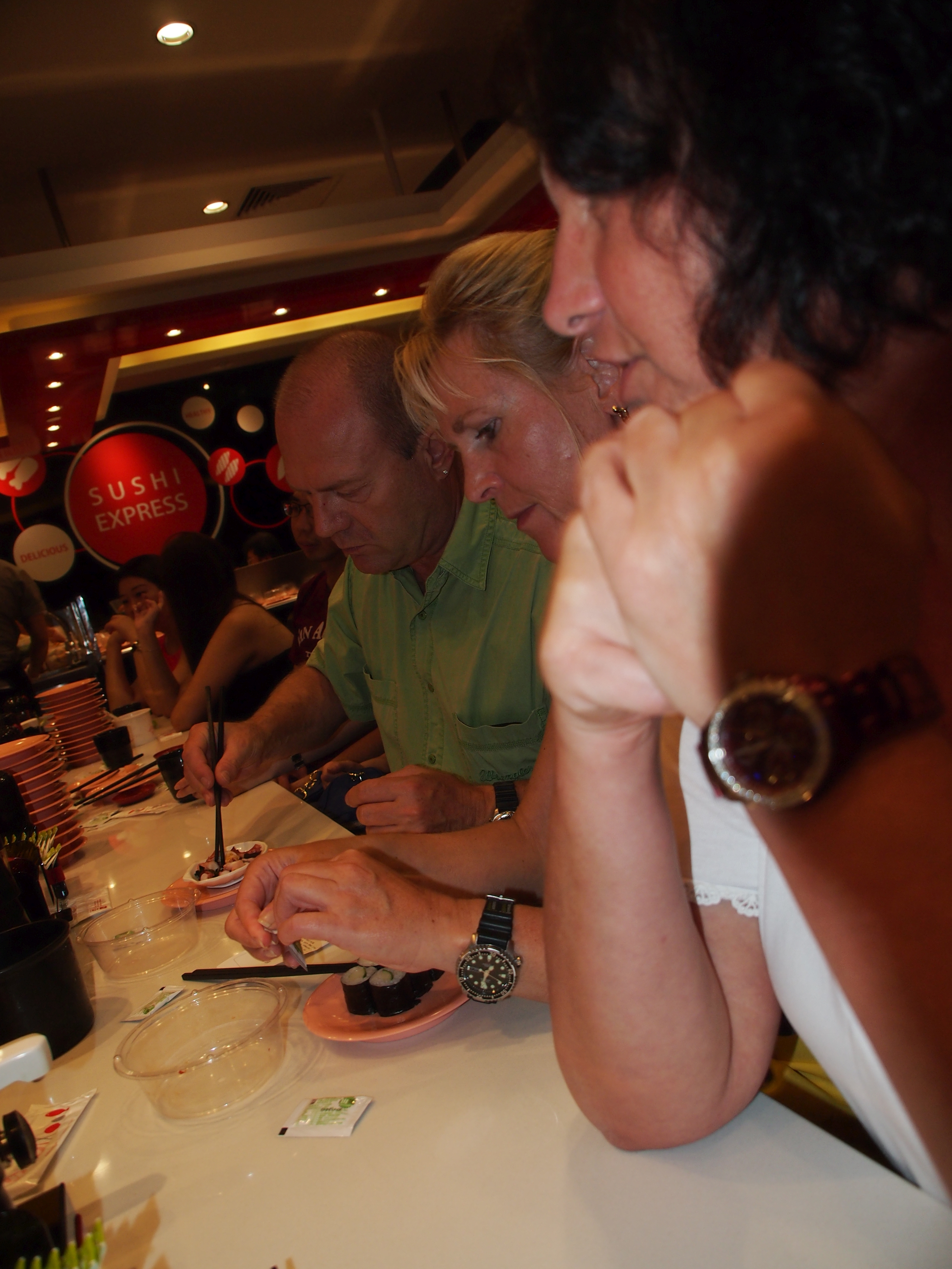 Heute Morgen ging es nach dem Frühstück erst mal zum Schoppen. Wir fuhren zum Raffles City Shopping Center und sind durch die vielen Geschäfte geschlendert. Danach ging es dann zum Botanischen Garten. Der ist nicht weit von der City sehr schön angelegt. Besonders gut hat mir der Orchideengarten gefallen. Zum Abendessen haben wir den "Sushi Express" in der Orchard Road ausprobiert. Jeder Teller der mit Sushi Häppchen auf dem Laufband vorbeikommt kostet ca. 1€. Also Lecker, preiswert und authentisch. Dann ging es noch zum SkyPark auf dem Marina Bay Sands Hotel. Die Aussicht über die Stadt mit den vielen Lichtern ist wirklich atemberaubend. Und zum Ausklang noch ein Eis bei ColdStone www.coldstonecreamery.com.sg . Hier wird das große Eisbällchen mit Zutaten nach eigenem Wunsch auf einer kalten Platte vermengt und dann in eine Waffel gegeben. Einfach lecker.