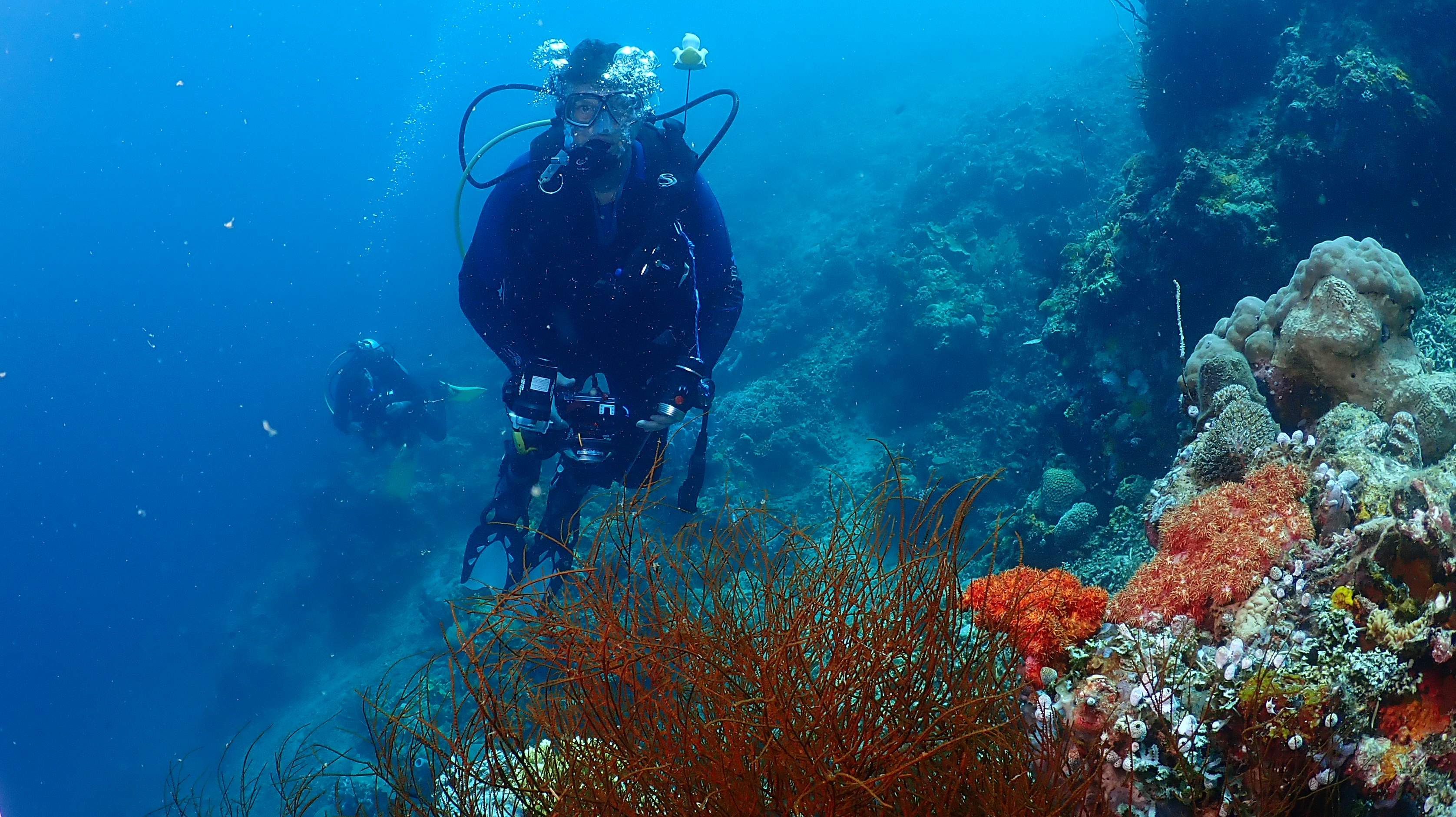 Heute waren wir 2 Mal nur 10 Bootsminuten von unsere neuen Tauchbasis entfernt tauchen. Es gab unter anderem einige Schnecken und einen Maul aufreißenden Frogfisch zu sehen. Nach der Rückfahrt haben wir uns zu zweit nochmal das Hausriff angesehen. Davon die letzten beiden Bilder. Abends waren wir einfach aber lecker im "Warung Makan Sri Ayu" essen.