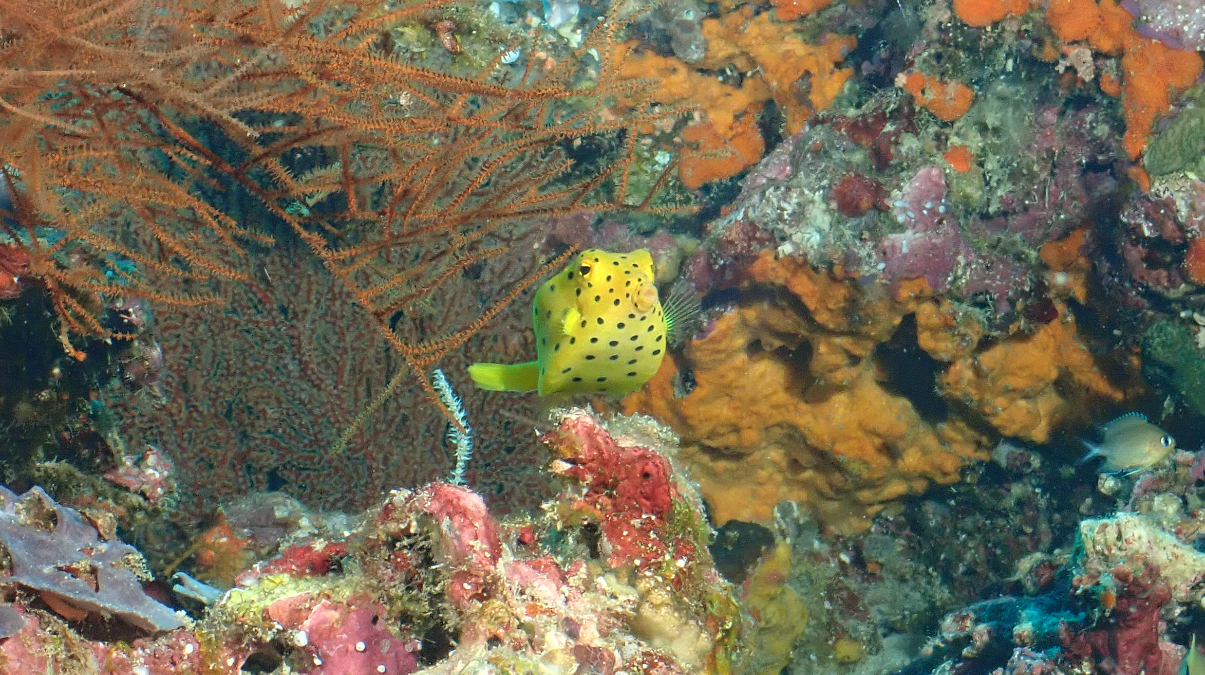 Heute haben wir unsere letzten TG auf Menjangan unternommen. Den Ersten ein sehr entspannter an Anchor Wreck unter anderem mit einer elektrischen Muschel und einem gelben Kofferfisch. Der Zweite dann am Tauchplatz "Under Water Cave". Hier findet man neben einer sehr schön bewachsenen und zerklüfteten Steilwand eine wunderschöne Höhle mit mehreren elektrischen Muscheln. Außerdem konnten wir einem Weichkorallen Krebs und mehrere Orang Utan Krabben finden.