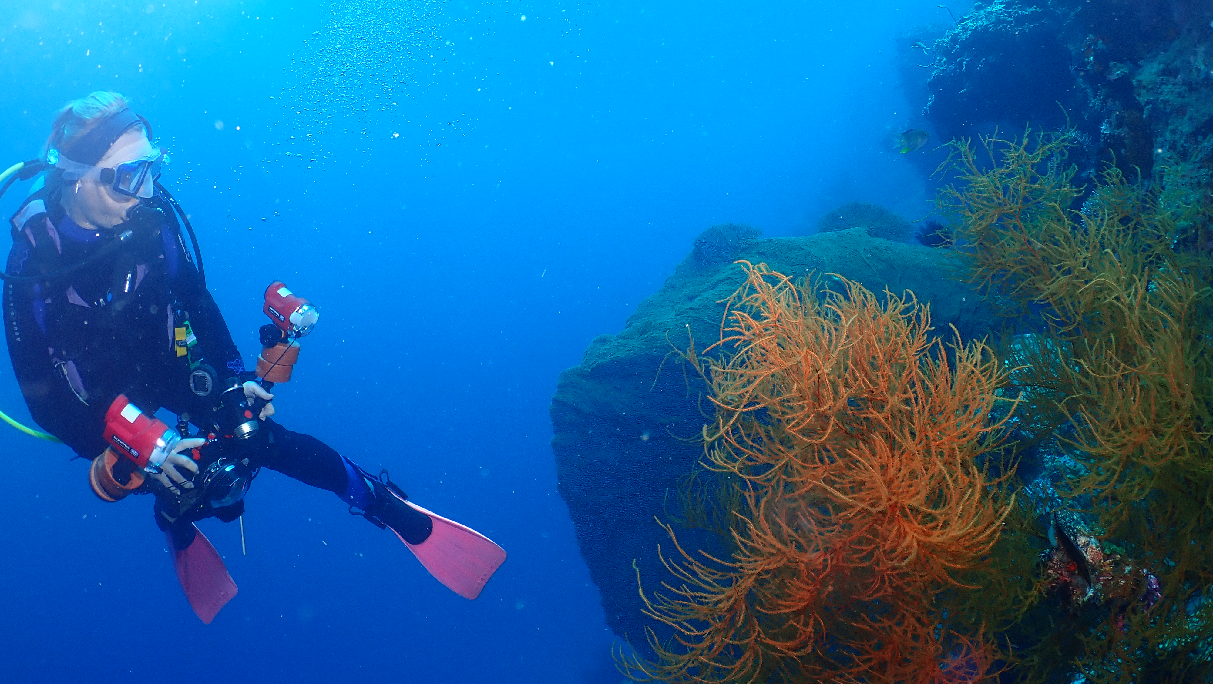 Heute haben wir unsere letzten TG auf Menjangan unternommen. Den Ersten ein sehr entspannter an Anchor Wreck unter anderem mit einer elektrischen Muschel und einem gelben Kofferfisch. Der Zweite dann am Tauchplatz "Under Water Cave". Hier findet man neben einer sehr schön bewachsenen und zerklüfteten Steilwand eine wunderschöne Höhle mit mehreren elektrischen Muscheln. Außerdem konnten wir einem Weichkorallen Krebs und mehrere Orang Utan Krabben finden.