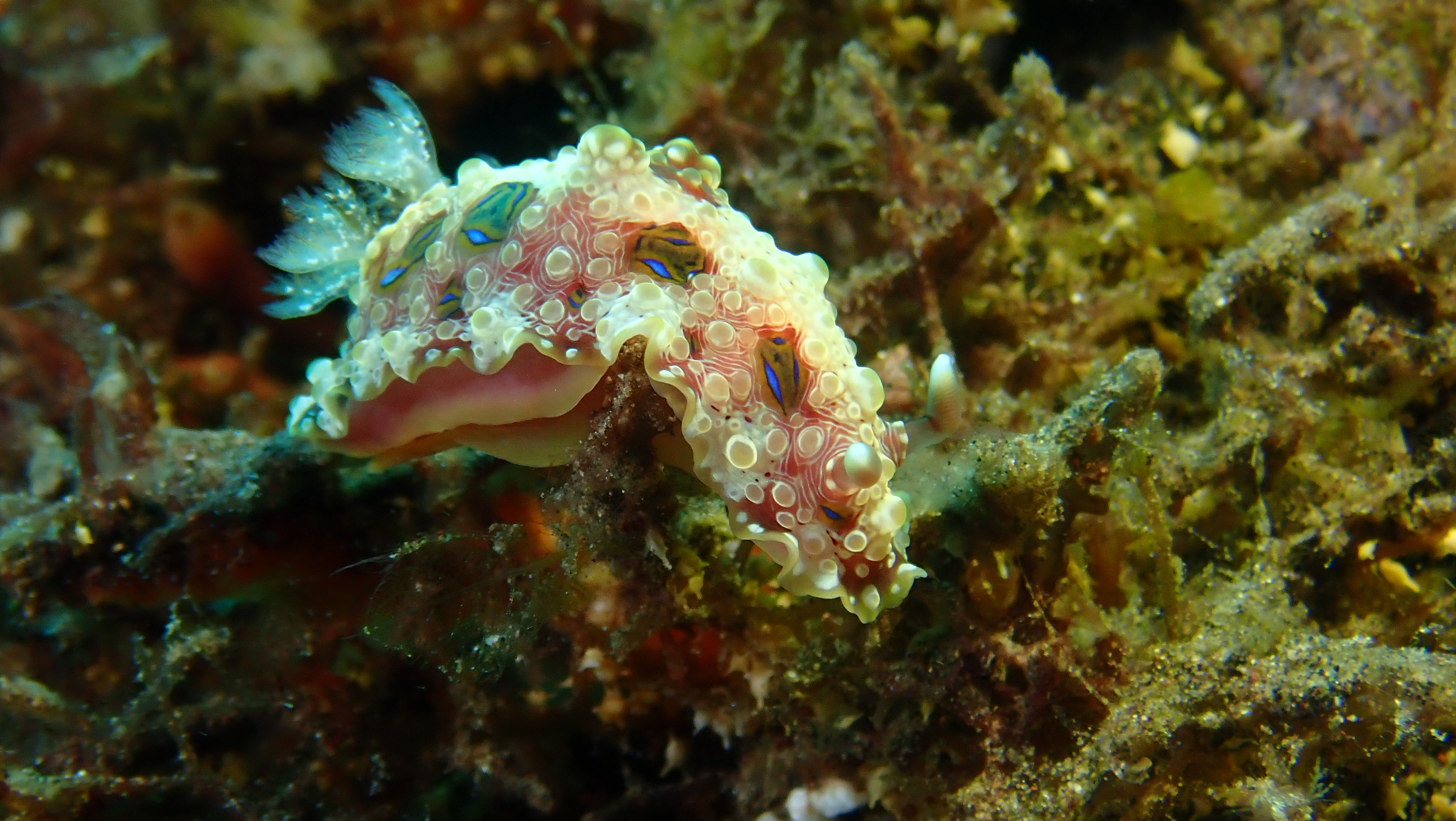 Heute haben wir 3 TG unternommen. Um 08:00 Uhr schon einen TG am Liberty Wrack. Dort haben wir 2 große Büffelkopf-Papageienfische gesehen. Aber es war viel Strömung somit bleibt mir der TG in keiner guten Erinnerung. Der zweite und dritte TG an den Makropunkten Seraya Secret und Batu Balah waren dagegen sehr schön und wir konnten Harlekin Garnelen, Schaukelfische, Garnelen, einen Geisterfetzenfisch und sehr viele Schnecken beobachten.