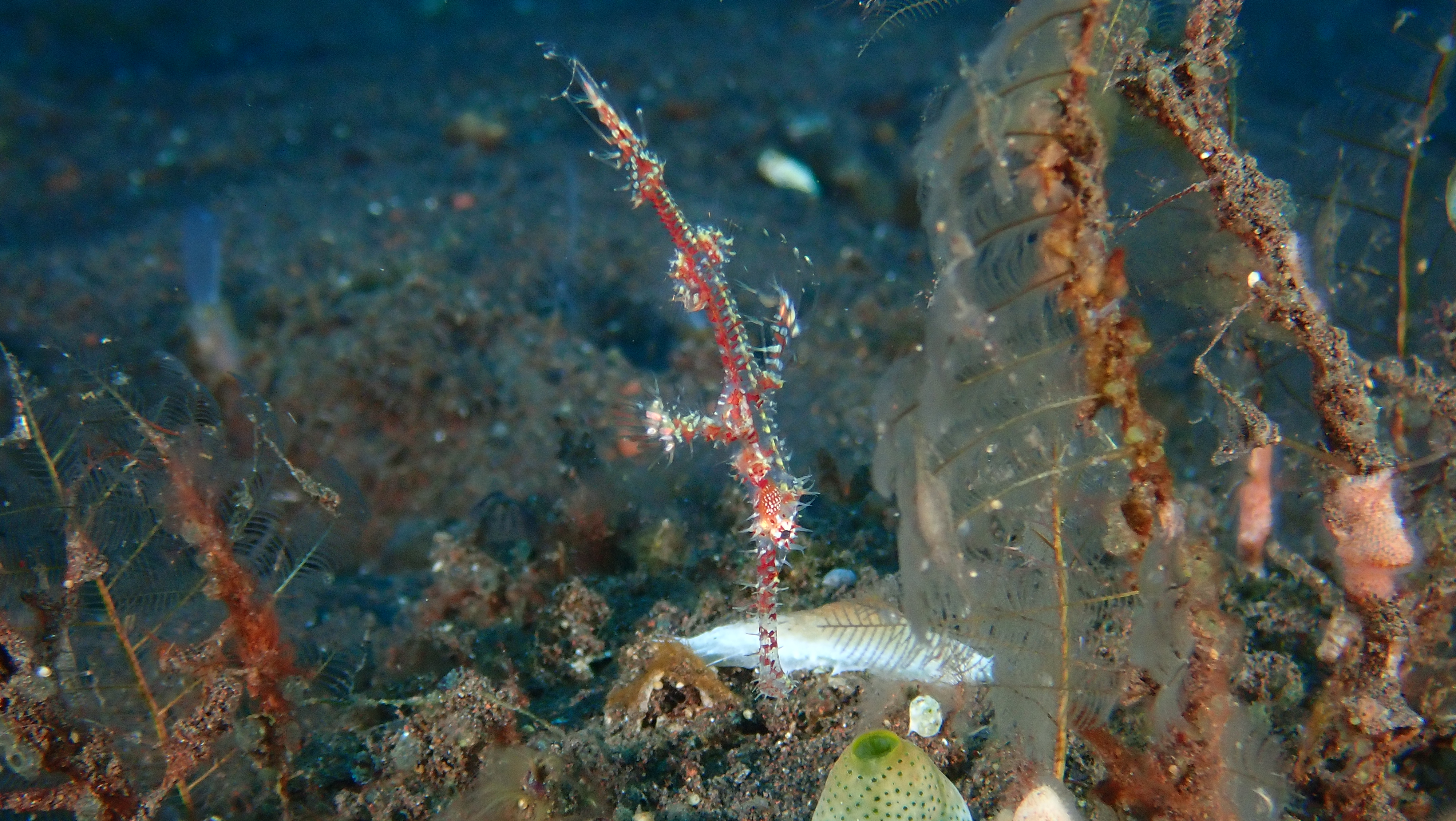 Heute ist unser letzter Tauchtag. Als erstes waren wir nur 500m vom Resort entfernt an der Steilwand. Hier konnten wir vor allem 2 Büffelkopf-Papageifische über 5 Minuten beobachten wie sie an uns ein paarmal vorbeizogen. Nach dem Frühstück waren wir dann auf "Malasti 1" wo wir wieder einen Geisterpfeifenfisch gefunden haben. Außerdem gab es hier, wie auf "Seraya Secret" unserem 3.TG, viele Schnecken von Stecknadelkopfgröße bis zu 7 cm sowie Garnelen und Krabben zu sehen.