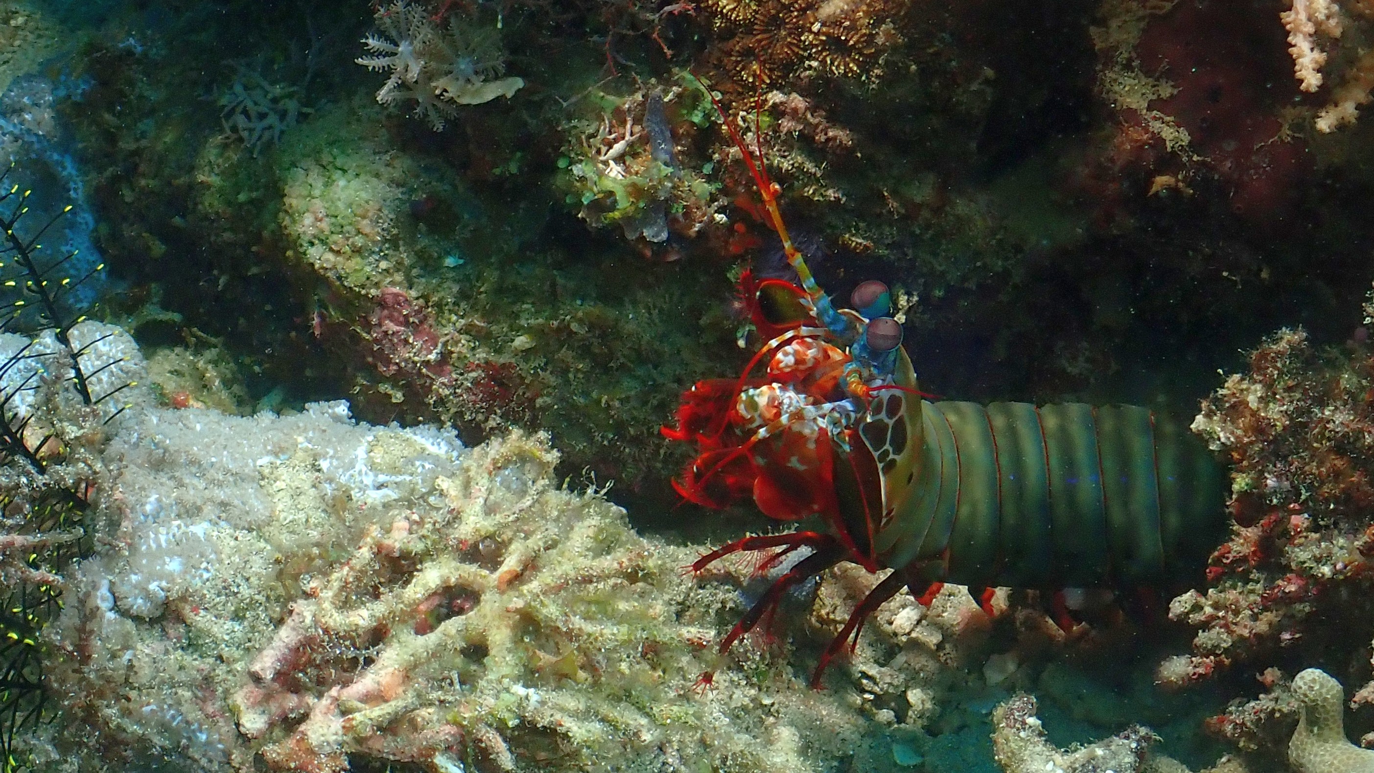 Heute Vormittag waren wir 2 Mal Tauchen. Besonders gefreut haben wir uns, als wir einen Geisterfetzenfisch, einen Frogfisch und einige Nacktschnecken gesehen haben.