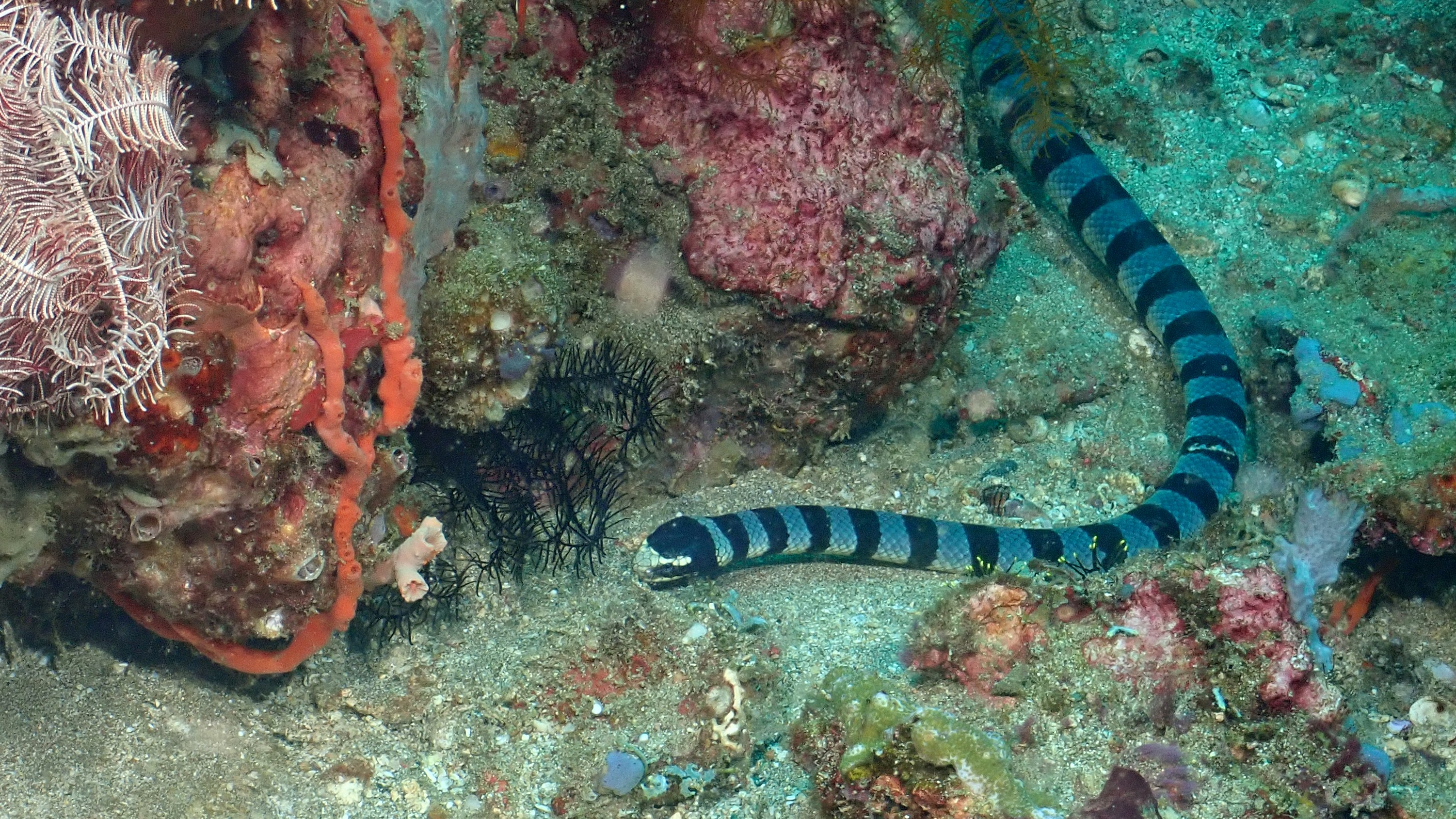 Bei den 2 Tauchgängen haben wir heute ein Seepferdchen, ein Pygmäen-Seepferdchen, eine Seeschlange, einige Krebse und wieder viele Schnecken gesehen.
