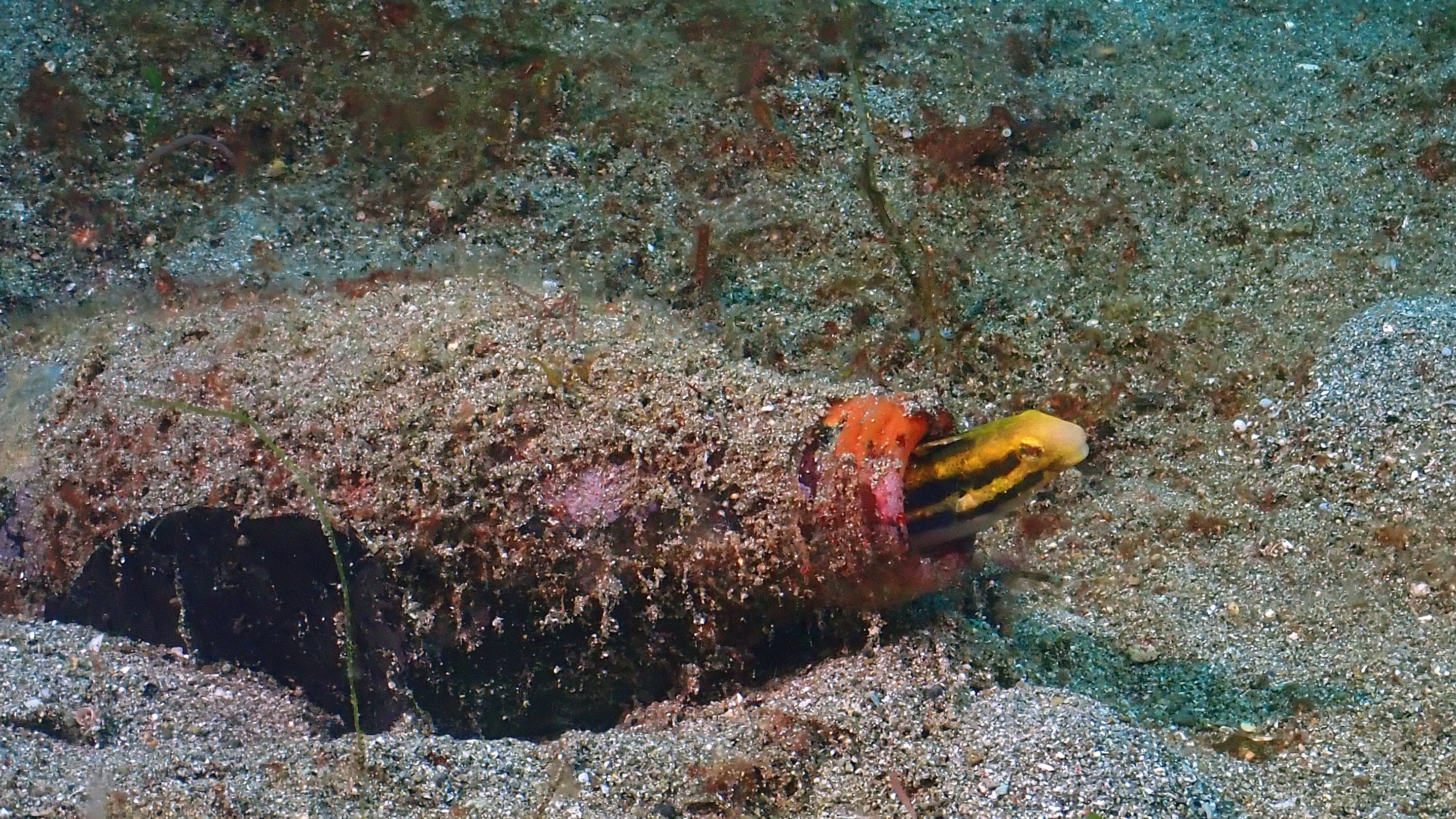 Heute konnten wir bei den Tauchgängen ein paar Meister der Tarnung erleben. Die "Mimikry Fadenschnecke" sieht aus wie eine Weichkoralle und der "Schmuck Geisterpfeifenfisch" wie ein Federstern. Wenn der "Seegras Geisterpfeifenfish" nachahmt, sagt ja schon der Name. Den lustigsten Namen hat die "Donald Duck Garnele". Am niedlichsten war aber der winzige rote Anglerfisch und die kleine "Flammende Sepia".