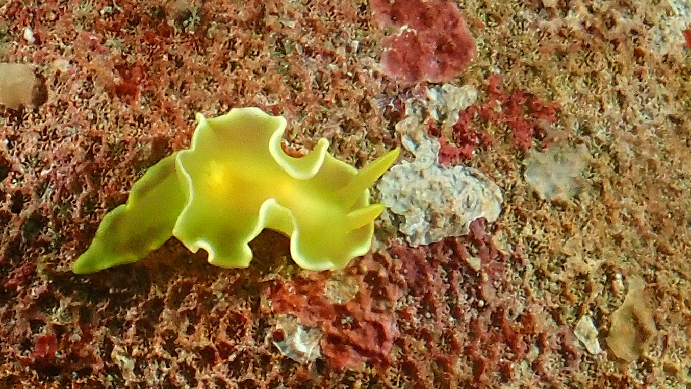 Heute gab es wieder viele Anglerfische zu sehen. Erst ein weißer mit Flecken auf der Suche nach einem neuen Standort. Gut zu sehen ist in dem Filmchen, wie er das mit dem Maul aufgenommene Wasser stoßartig aus den hinten liegenden Kiemenöffnungen presst und so vorwärtskommt. Aber auch der orange und der ganz kleine Anglerfisch waren sehr schön. Nicht zu vergessen war auch die Harlekingarnele und der Fangschreckenkrebs. Zum Schluss kurz vor Erreichen der Nullzeit habe ich dann noch ein Perlhuhn Kugelfisch in seiner Jugendform gesehen.