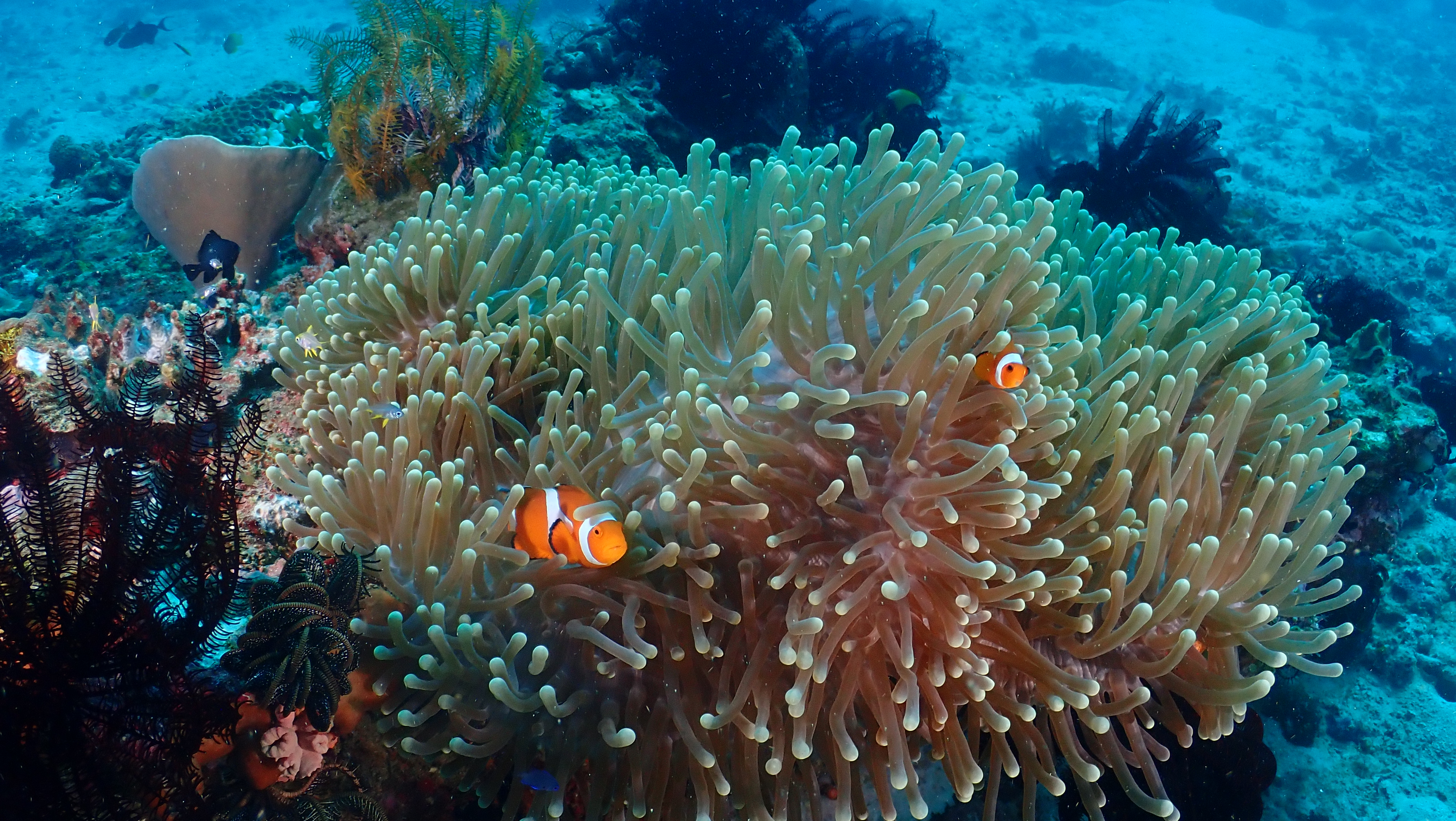 Heute gab es wieder viele Anglerfische zu sehen. Erst ein weißer mit Flecken auf der Suche nach einem neuen Standort. Gut zu sehen ist in dem Filmchen, wie er das mit dem Maul aufgenommene Wasser stoßartig aus den hinten liegenden Kiemenöffnungen presst und so vorwärtskommt. Aber auch der orange und der ganz kleine Anglerfisch waren sehr schön. Nicht zu vergessen war auch die Harlekingarnele und der Fangschreckenkrebs. Zum Schluss kurz vor Erreichen der Nullzeit habe ich dann noch ein Perlhuhn Kugelfisch in seiner Jugendform gesehen.