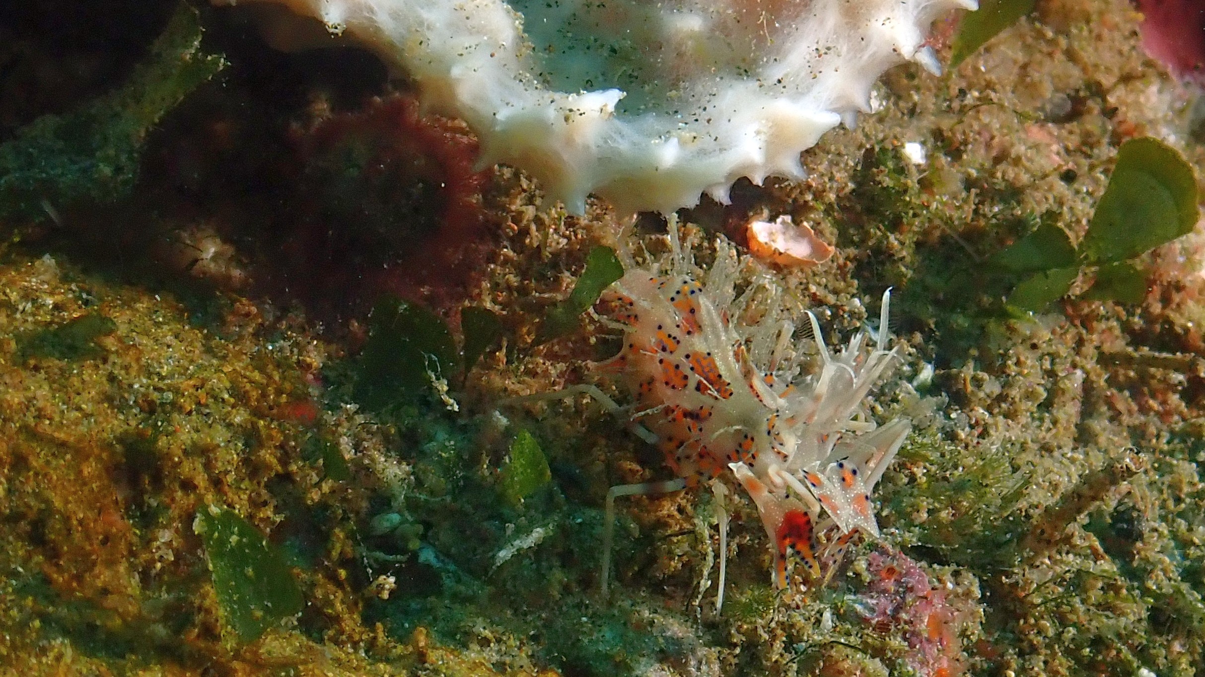 Während des ersten Tauchgangs haben wir einen Tiger-Shrimp, einen kleinen weißen Anglerfisch und an einer weißen Gorgonie dann Korallengarnelen und Seegras-Feilenfische gefunden. Beim zweiten Tauchgang ist uns gleich eine Schildkröte begegnet. Daneben konnten wir uns noch die Eier des Clownfisches, Schnepfenmesserfische und einen Drachenkopf im Sand ansehen. Beim dritten Tauchgang an einer schönen Steilwand fanden wir Schnecken, eine Muräne und viele Rifffische.