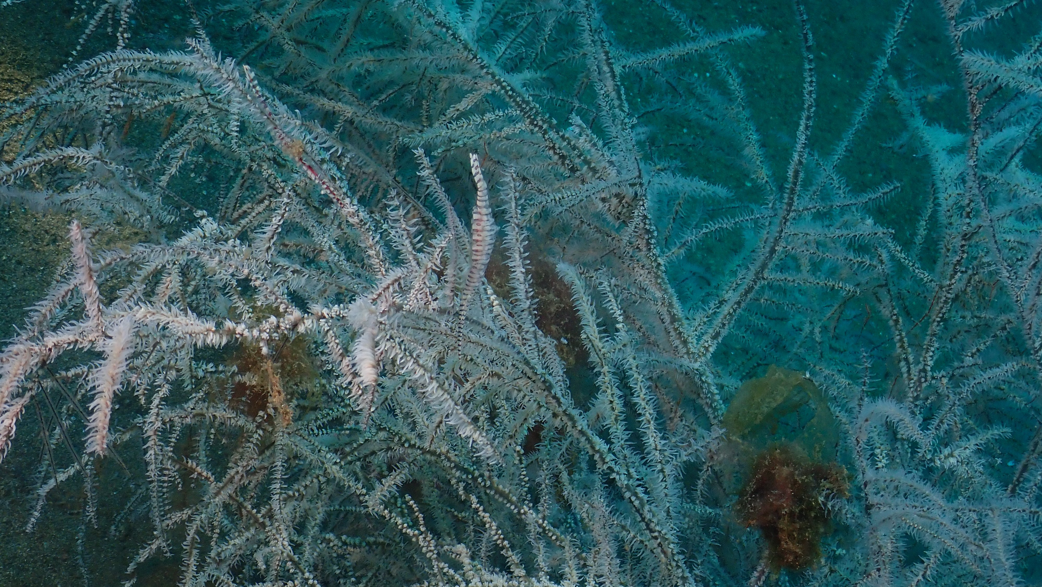 Während des ersten Tauchgangs haben wir einen Tiger-Shrimp, einen kleinen weißen Anglerfisch und an einer weißen Gorgonie dann Korallengarnelen und Seegras-Feilenfische gefunden. Beim zweiten Tauchgang ist uns gleich eine Schildkröte begegnet. Daneben konnten wir uns noch die Eier des Clownfisches, Schnepfenmesserfische und einen Drachenkopf im Sand ansehen. Beim dritten Tauchgang an einer schönen Steilwand fanden wir Schnecken, eine Muräne und viele Rifffische.