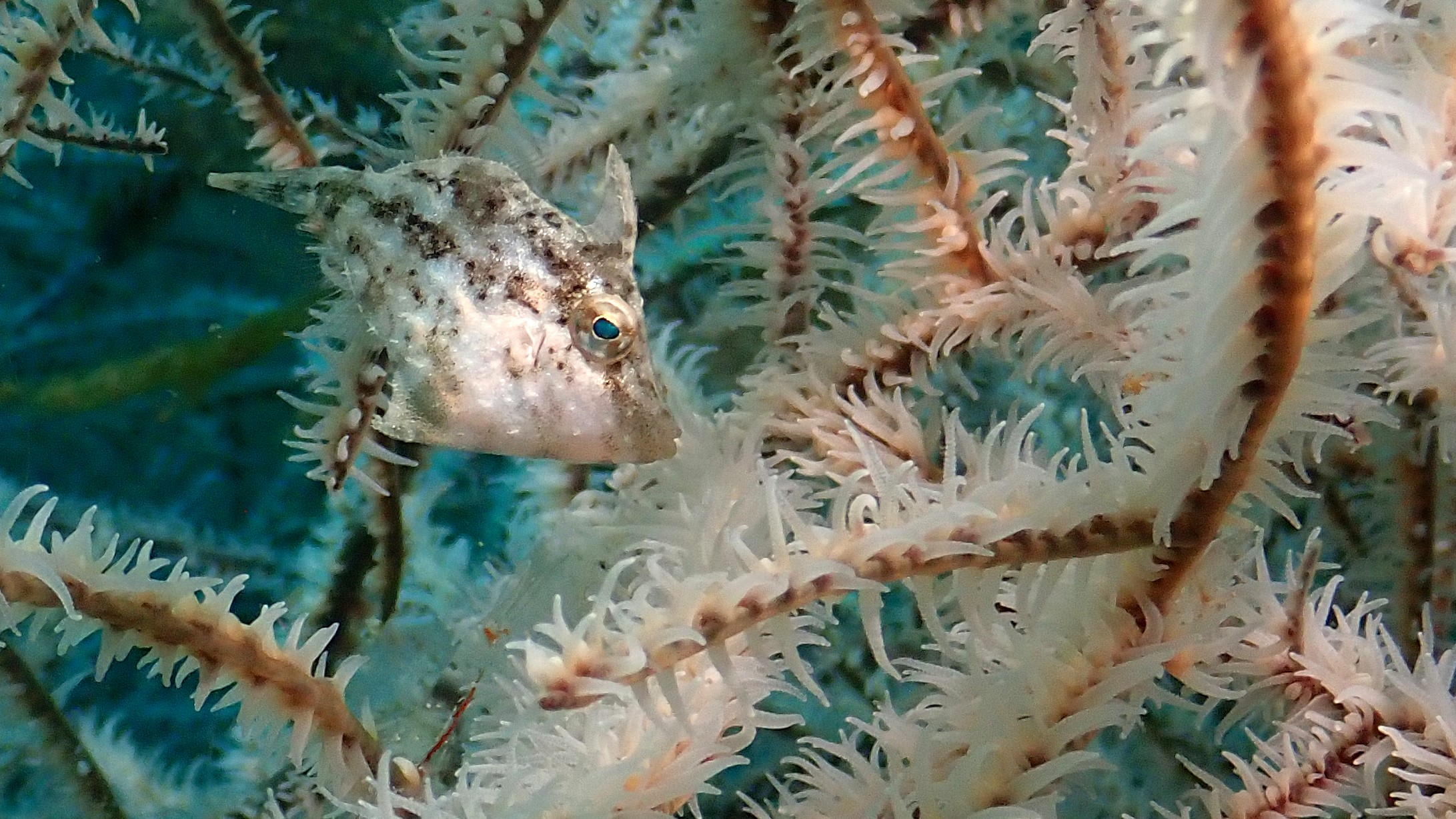 Während des ersten Tauchgangs haben wir einen Tiger-Shrimp, einen kleinen weißen Anglerfisch und an einer weißen Gorgonie dann Korallengarnelen und Seegras-Feilenfische gefunden. Beim zweiten Tauchgang ist uns gleich eine Schildkröte begegnet. Daneben konnten wir uns noch die Eier des Clownfisches, Schnepfenmesserfische und einen Drachenkopf im Sand ansehen. Beim dritten Tauchgang an einer schönen Steilwand fanden wir Schnecken, eine Muräne und viele Rifffische.