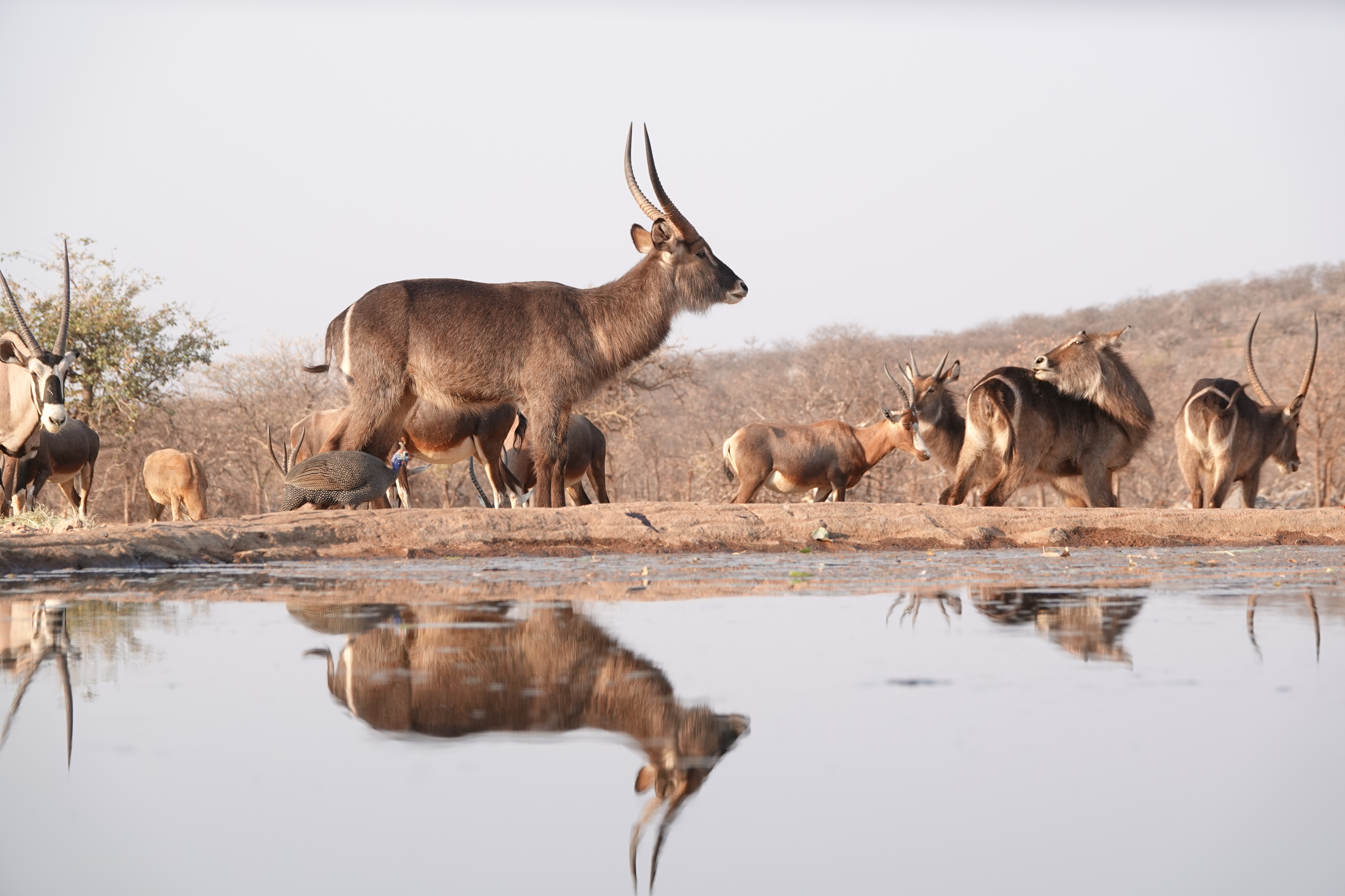 Am Abend ließen wir den Tag entspannt auf der Terrasse der Lodge ausklingen. Mit einem Sundowner in der Hand und dem Blick auf das Wasserloch, wo sich immer wieder Tiere versammelten, war die Atmosphäre magisch.