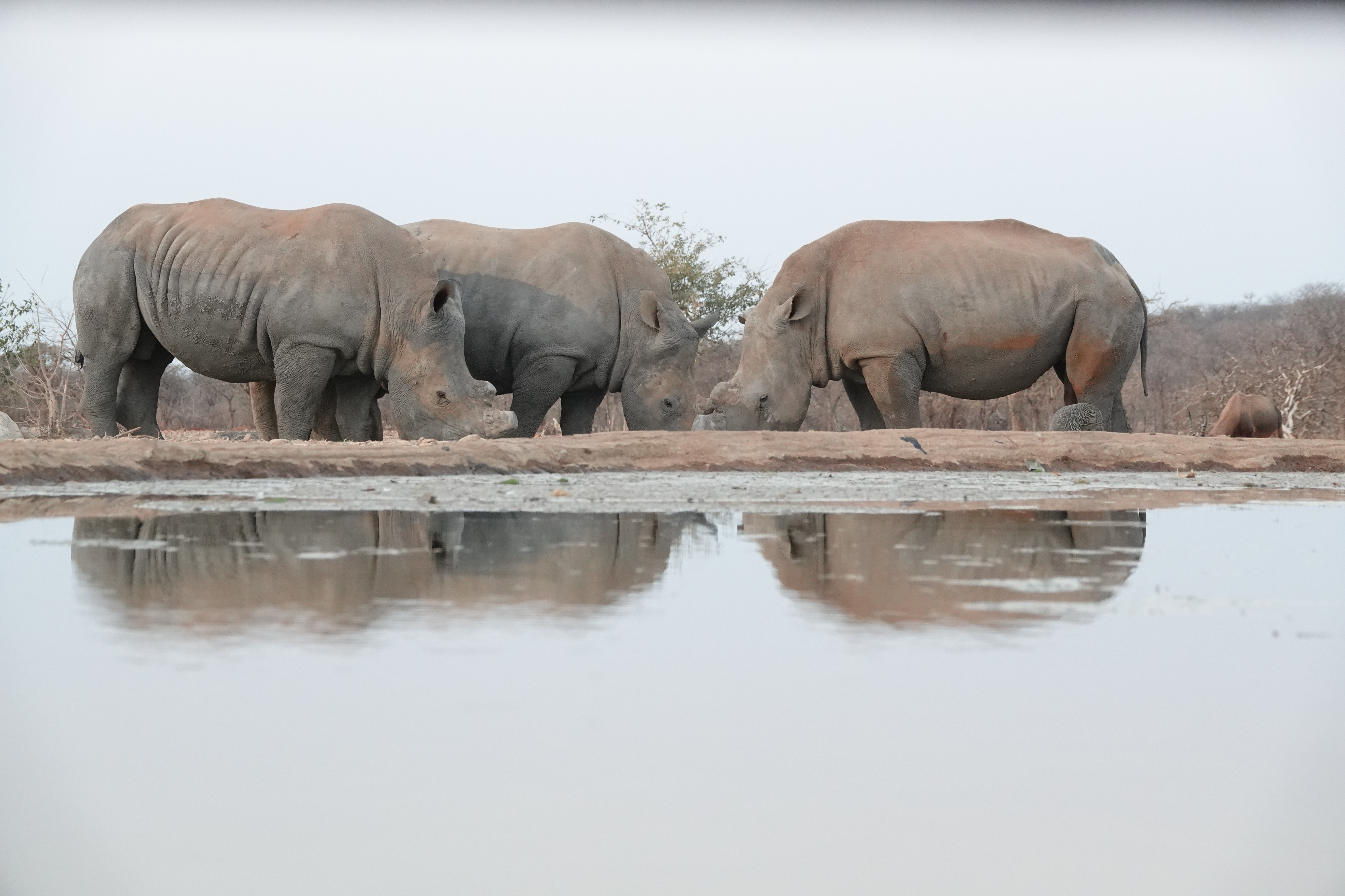 Nach einem gemütlichen Frühstück und einer kleinen Klettertour durch die faszinierenden Felsformationen rund um die Ai Aiba Lodge brachen wir auf in Richtung Okutala Etosha Lodge (https://okutala.com/). Die Okutala Etosha Lodge empfing uns mit ihrer besonderen Lage und einem hauseigenen Wasserloch, das perfekt für Tierbeobachtungen ist. Besonders beeindruckend war der Unterstand, der es uns ermöglichte, die Tiere hautnah zu erleben. Hier sahen wir eine beeindruckende Vielfalt an Giraffen, Nashörner, Zebras, Oryxantilopen, Springböcke, Wasserbüffel und auch einige Perlhühner. Am Abend ließen wir den Tag entspannt auf der Terrasse der Lodge ausklingen. Mit einem Sundowner in der Hand und dem Blick auf das Wasserloch, wo sich immer wieder Tiere versammelten, war die Atmosphäre magisch. Das köstliche Abendessen rundete diesen unvergesslichen Abend perfekt ab.