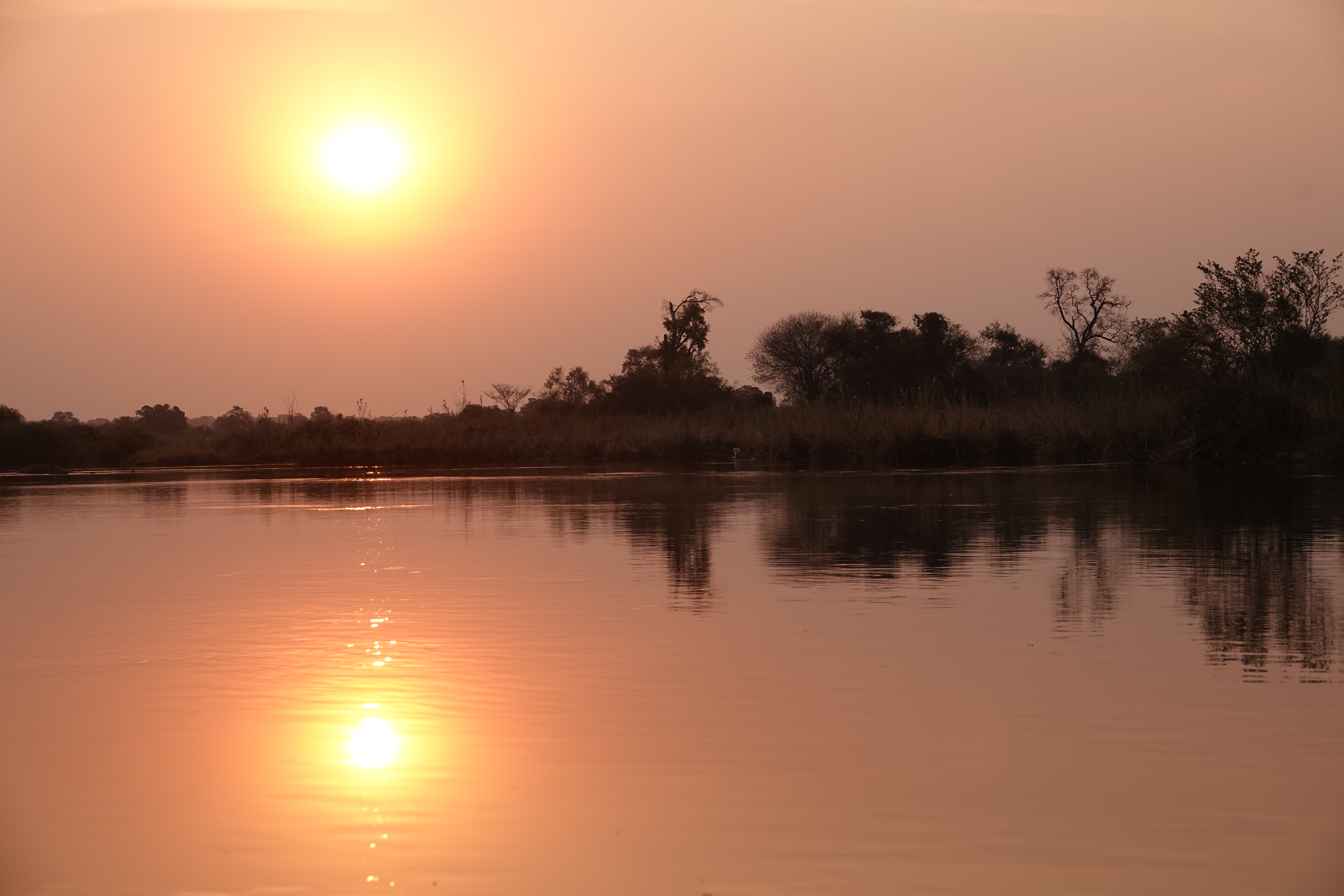 Im Vergleich zu gestern war unsere Strecke heute kürzer. Wir fuhren entlang des Okavango weiter bis zur Mobola Lodge. Dort erwartete uns eine Sundowner-Bootsfahrt, bei der wir ein Krokodil und drei Nilpferde aus nächster Nähe beobachten konnten – ein faszinierendes Erlebnis!