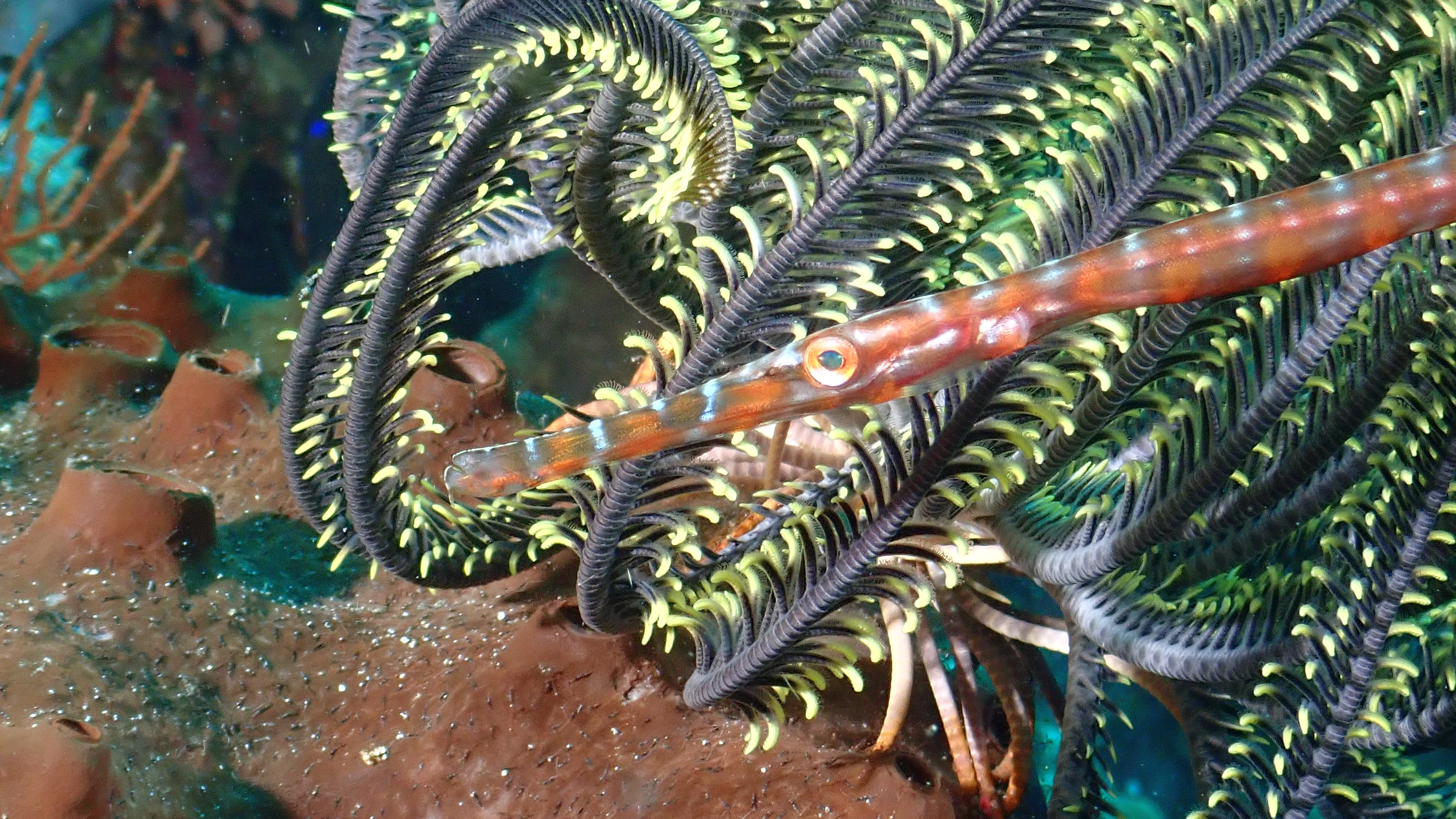Heute starteten wir früh in den Tag: Bereits um 7:00 Uhr saßen wir beim Frühstück, denn um 8:00 Uhr legte unser Boot zu zwei Tauchgängen ab. Beim ersten Tauchgang begeisterte mich besonders ein leuchtend gelber Kofferfisch sowie ein rötlicher Schaukelfisch, der direkt neben einer beeindruckenden Schildkröte von gut 1,2 Metern Größe saß. Im zweiten Tauchgang entdeckten wir einen Blattwurm und bewunderten vor allem die eleganten Federsterne.