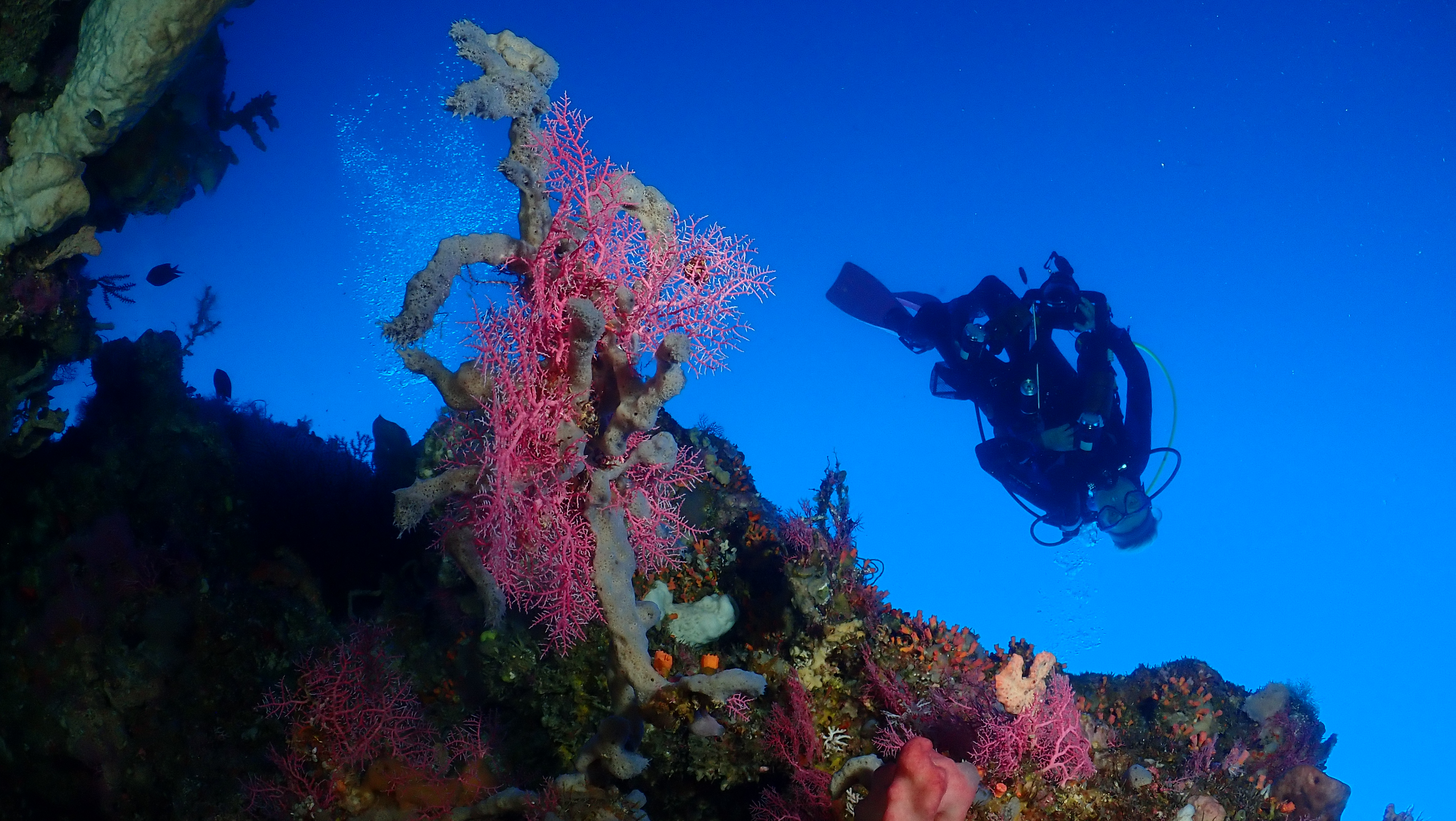 Am Vormittag erwarteten uns zwei ganz besondere Tauchgänge. Zuerst glitten wir an einer zerklüfteten Steilwand entlang, wo die einfallenden Sonnenstrahlen zwischen den Felsen tanzten und magische Lichtspiele auf den Grund zauberten – ein Moment zum Innehalten. Noch eindrucksvoller war jedoch der zweite Tauchgang an der „Turtle Street“: Schildkröte um Schildkröte kreuzte unseren Weg, so viele, dass wir kaum wussten, wohin wir zuerst schauen sollten. Dieses Erlebnis wird uns sicher lange in Erinnerung bleiben.