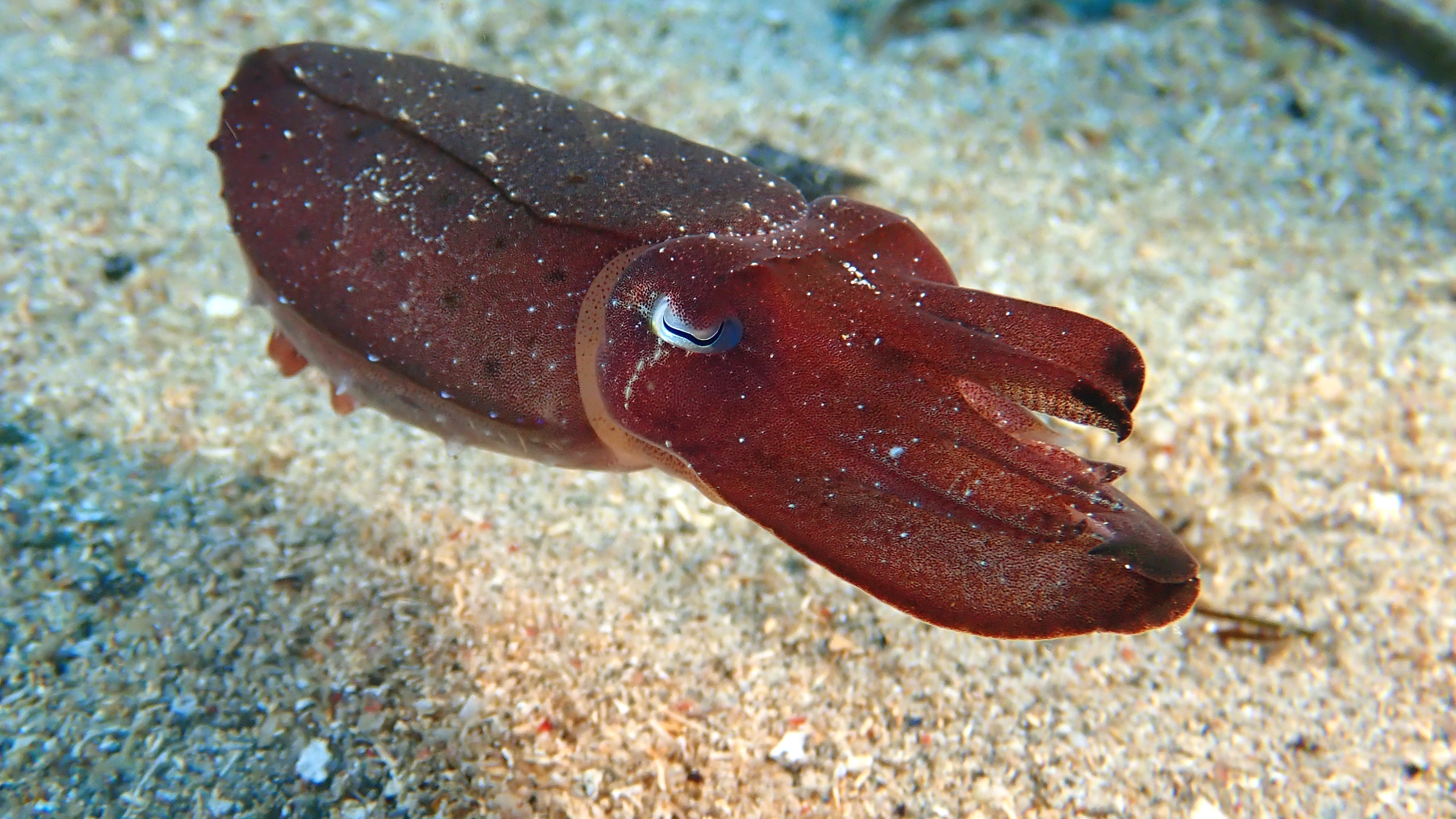 Auch heute unternahmen wir zwei wunderschöne Tauchgänge – und wieder war unser Dive Guide Dani an unserer Seite. Er begleitet uns seit Beginn der Reise und hat sich längst als einer der besten Guides erwiesen, die wir je hatten. Mit seiner Hilfe entdeckten wir erneut viele exotische Meeresbewohner: einen kleinen Fangschreckenkrebs,einen kleinen Octopus, eine winzige Sepia und einen ebenso kleinen Anglerfisch. Dank Danis scharfem Auge blieb uns nichts verborgen – jeder Tauchgang mit ihm ist ein kleines Abenteuer.
